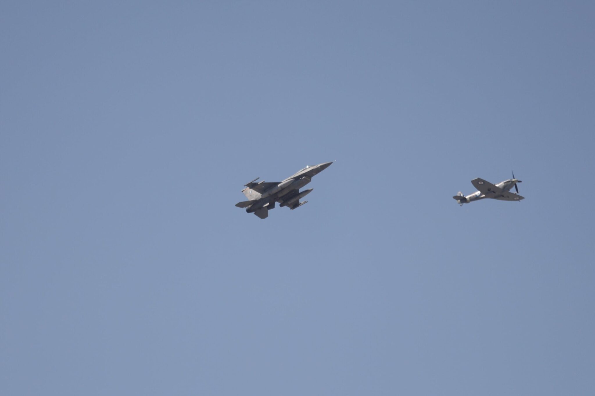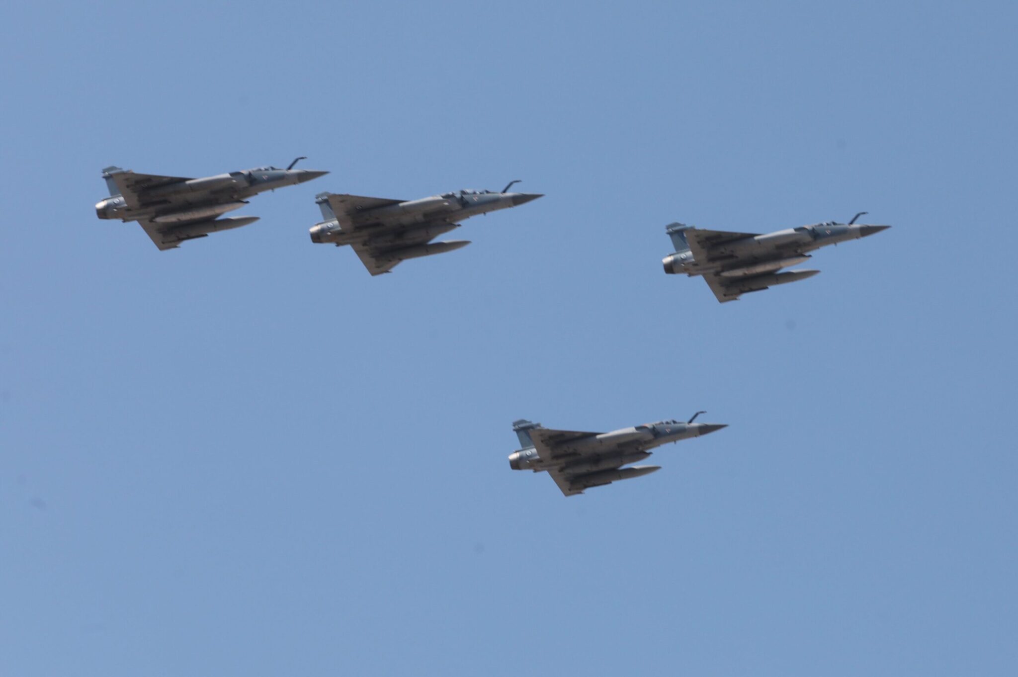 Πάνω από τον αττικό ουρανό πέταξαν σε άψογους σχηματισμούς όλοι οι τύποι αεροσκαφών και ελικοπτέρων των Ενόπλων Δυνάμεων (Rafale, F-16, M-2000/5 και F-4), μαζί με RAFALE της γαλλικής Πολεμικής Αεροπορίας, ελικόπτερα της Αεροπορίας Στρατού Apache, chinook, NH-90, UH-1H (huey) kiowa warrior, SH-70 και 1 αεροσκάφος ναυτικής συνεργασίας P-3B του Πολεμικού Ναυτικού, ένα ελικόπτερο του Λιμενικού Σώματος και 2 ελικόπτερα του Πυροσβεστικού Σώματος συντονιστικού ρόλου.