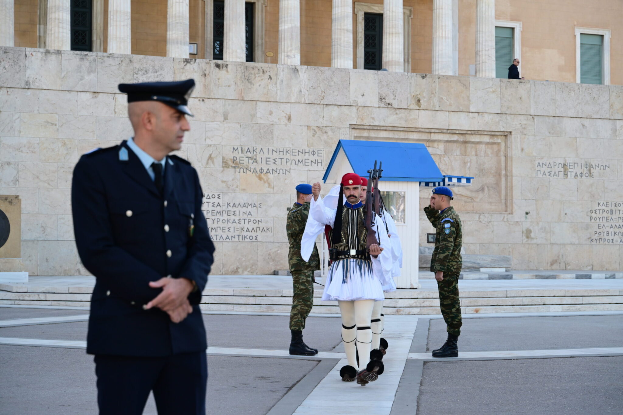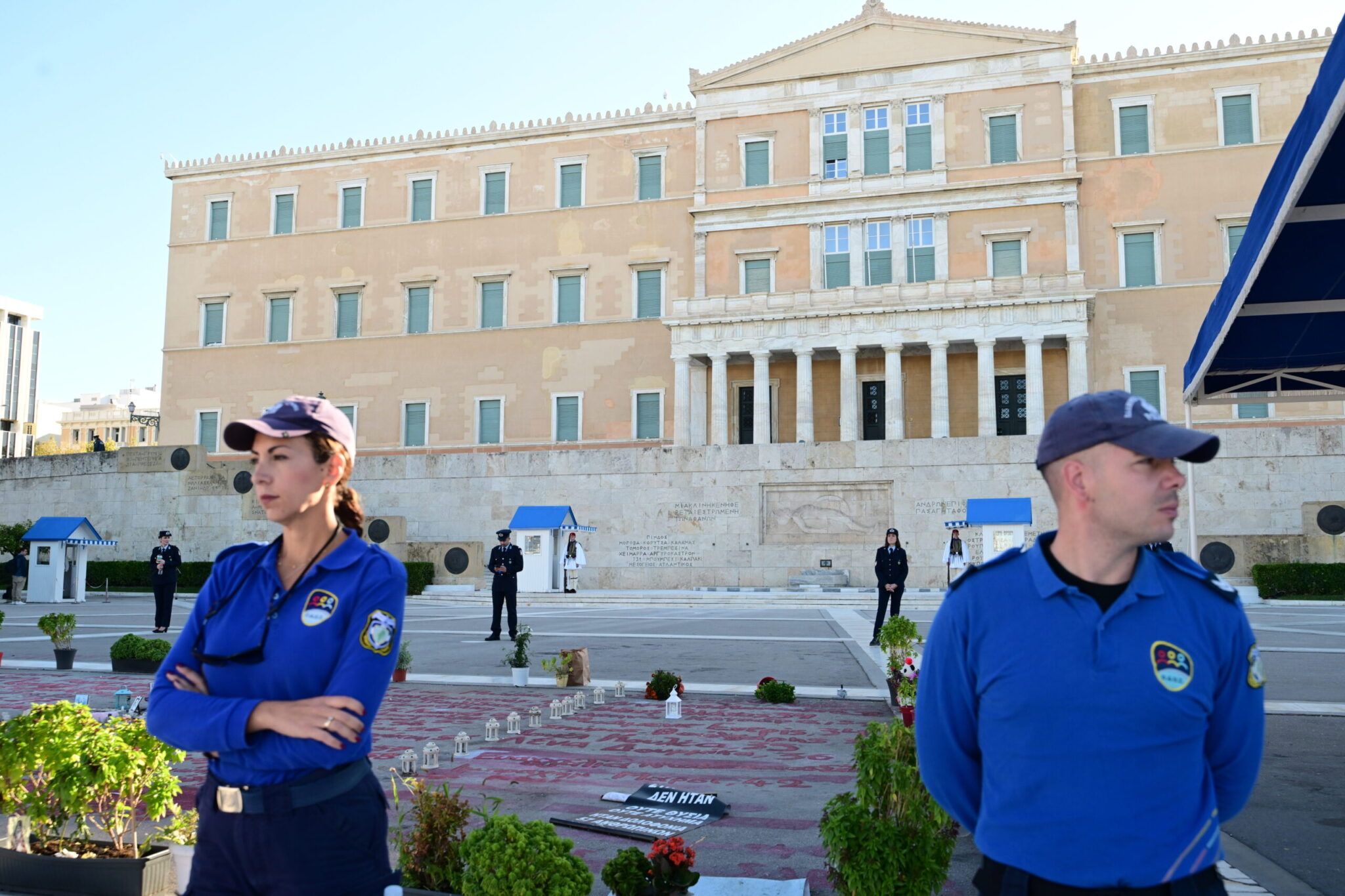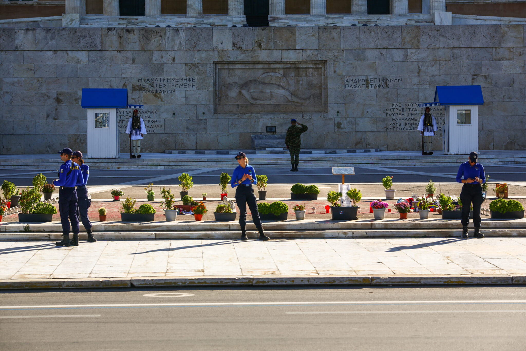 Υπό τον φόβο εντάσεων, εξαιτίας των όσων έχουν προηγηθεί με τον Αγνωστο Στρατιώτη και εξαιτίας της προαναγγελίας από την πρόεδρο της Πλεύσης Ελευθερίας Ζωή Κωνσταντοπούλου για παρουσία μαζί με συγγενείς θυμάτων στα Τέμπη ή μελών της ομάδας «Μέχρι Τέλους», χιλιάδες αστυνομικοί έχουν ακροβολιστεί σε κάθε γωνιά της πλατείας Συντάγματος και τα πέριξ.