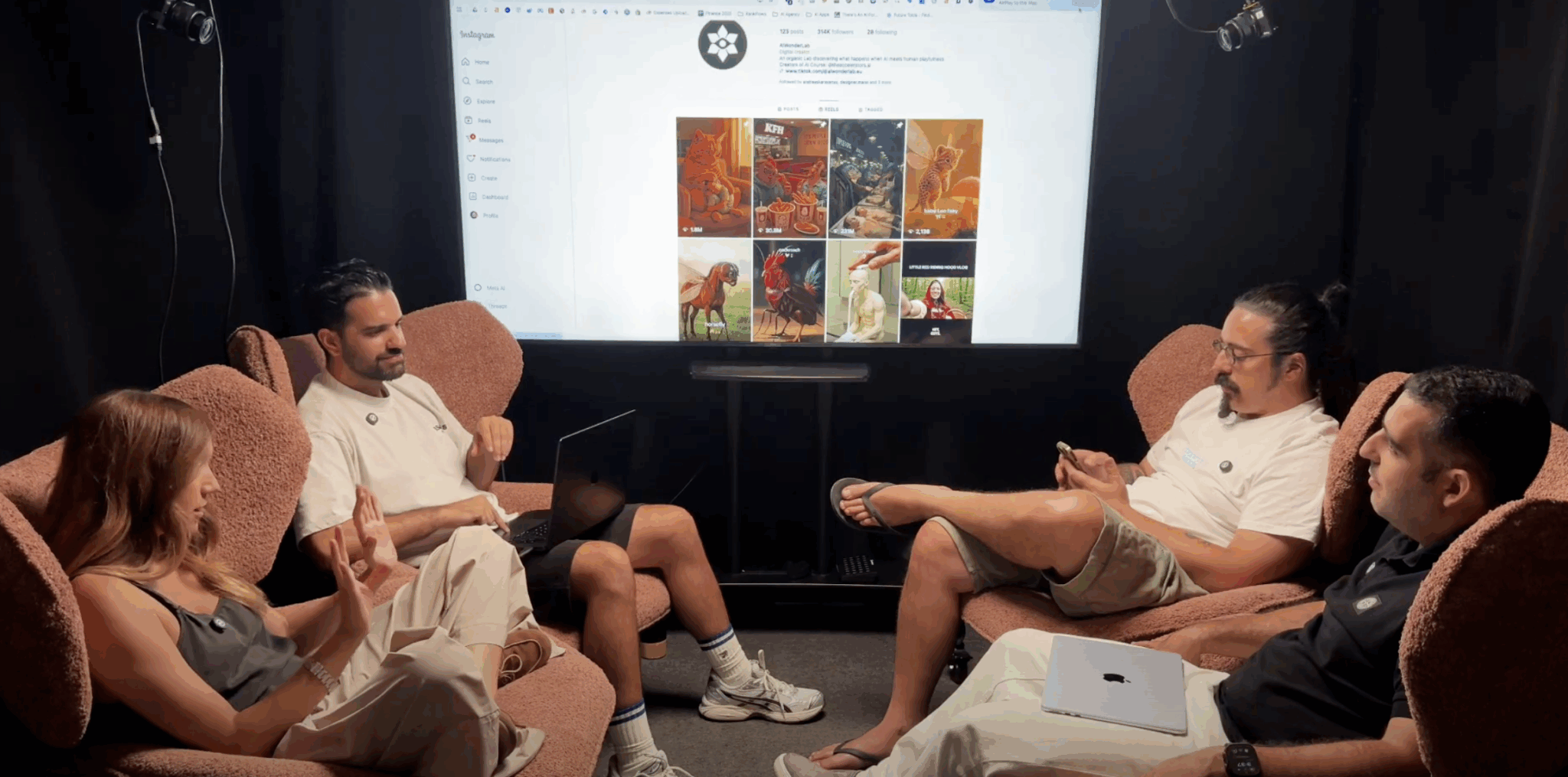 Το 4 Chairs είναι παραγωγή του AI WonderLab – ενός playground όπου το AI συναντάει την ανθρώπινη περιέργεια και όπου κάθε τρελή ιδέα έχει την ευκαιρία να γίνει το επόμενο project. Από αυτό το playground έχουν προκύψει projects όπως το AI Awakening (ένα 8ωρο που ξυπνάει τις επιχειρήσεις στο τι πραγματικά μπορεί να κάνει το AI), music production που ακούγεται σαν να βγήκε από studio, mind-blowing content που σπάει τα counters και μας κάνει να σκεφτόμαστε ότι ζούμε στο μέλλον, και αυτοματισμοί που “απελευθερώνουν” τον κόσμο από βαρετά tasks αλλάζοντας το πώς λειτουργούν ολόκληρα brands.