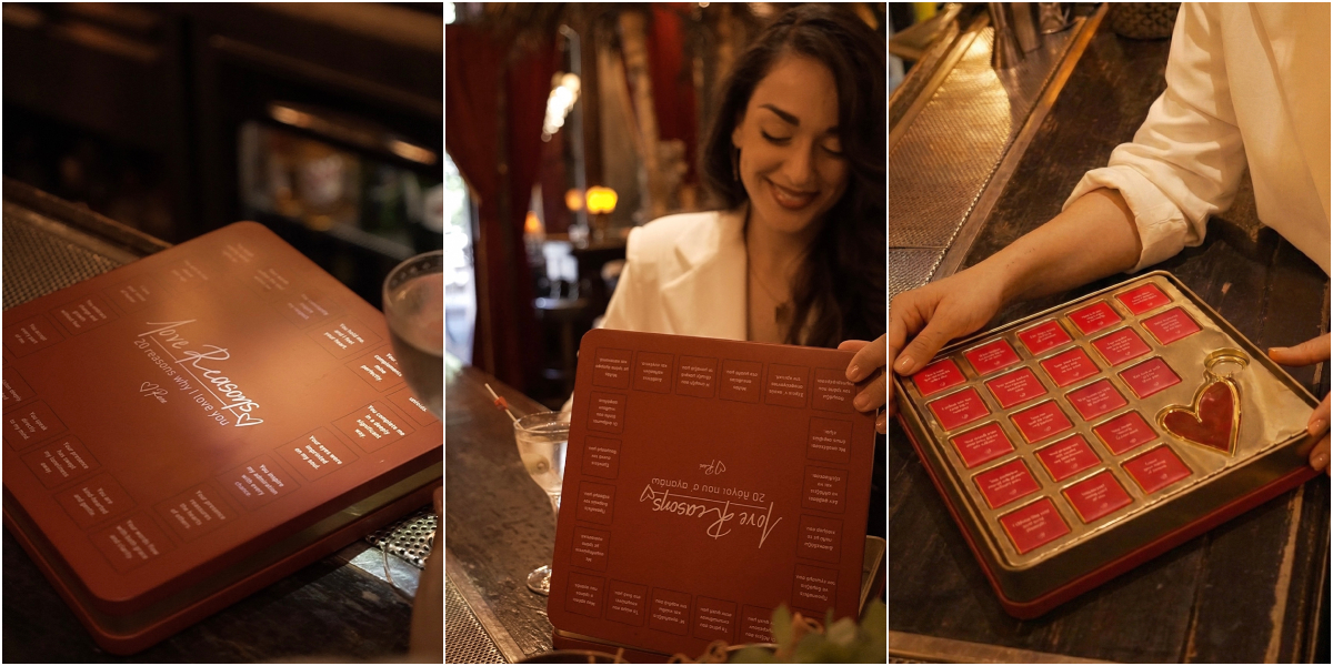 Το LOVE REASONS είναι ένα κουτί με είκοσι σοκολατάκια, είκοσι μικρές αφορμές να του θυμίσεις πόσο πολύ τον αγαπάς. Κάθε μικρό τετράγωνο κρύβει μια φράση, έναν λόγο, μια τρυφερή υπενθύμιση: «με αποδέχεσαι όπως ακριβώς είμαι», «το σώμα σου κουμπώνει στο δικό μου», «Μ΄αγκαλιάζεις και νιώθω τη καρδιά σου». Μαζί, ένα μπρελόκ-καρδιά που μένει πολύ μετά την τελευταία μπουκιά, σαν ένα μικρό κομμάτι από σένα που θα κουβαλά πάντα μαζί του.