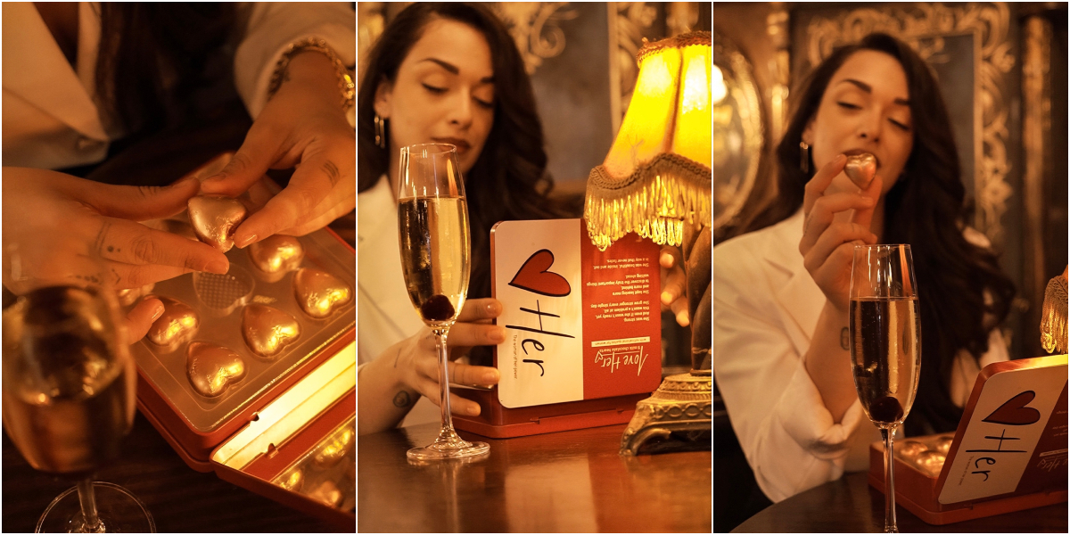 Το LOVE HER είναι ένα μεταλλικό κουτί με σοκολατάκια πραλίνας. Ένα δώρο που δεν της λέει μόνο «είσαι όμορφη», αλλά «είσαι μοναδική», «σε θαυμάζω γι’ αυτό που είσαι», «βλέπω πόσα κάνεις κάθε μέρα». Στην εσωτερική πλευρά του κουτιού υπάρχει ένας καθρέφτης, ο οποίος δεν είναι εκεί για να κοιτάζει απλώς το πρόσωπό της, αλλά για να θυμάται πόσα αξίζει και τα σοκολατάκια είναι η πιο γλυκιά αφορμή να της το πεις.Το κουτί αυτό μπορείς να το κρατήσεις και ως δεύτερη χρήση ως κοσμηματοθήκη.