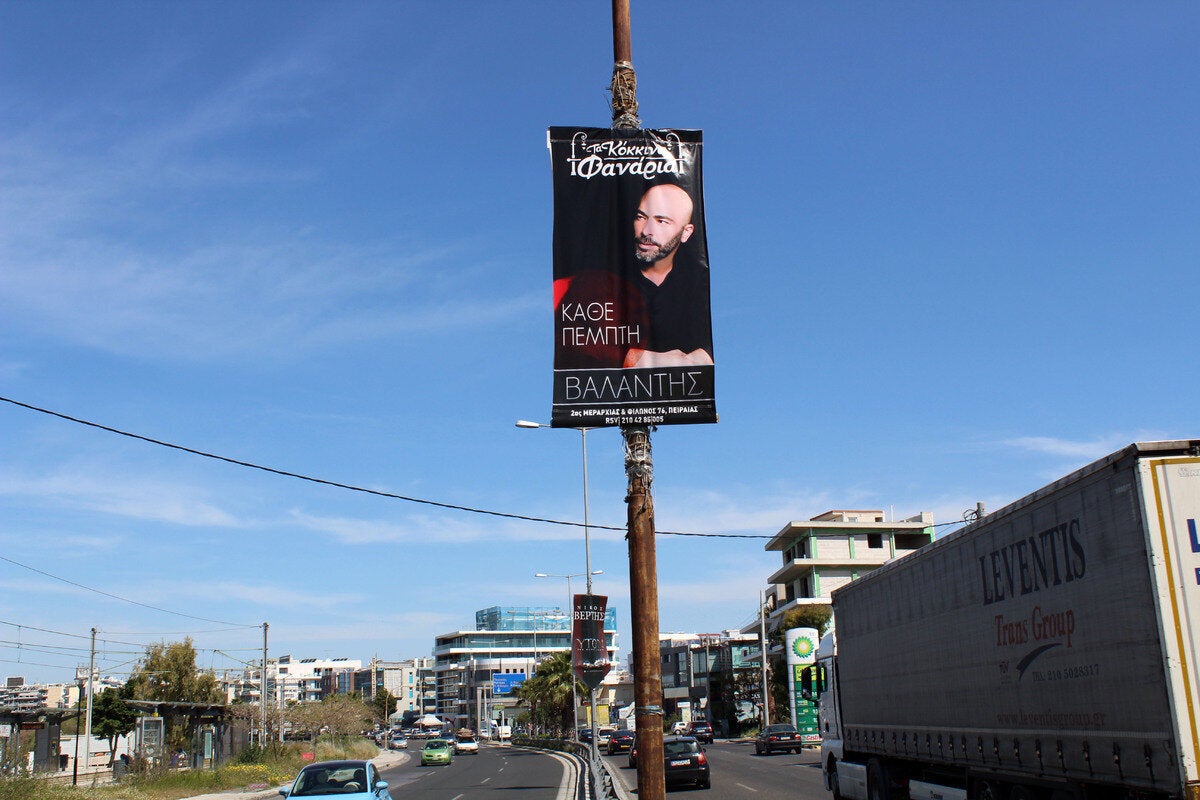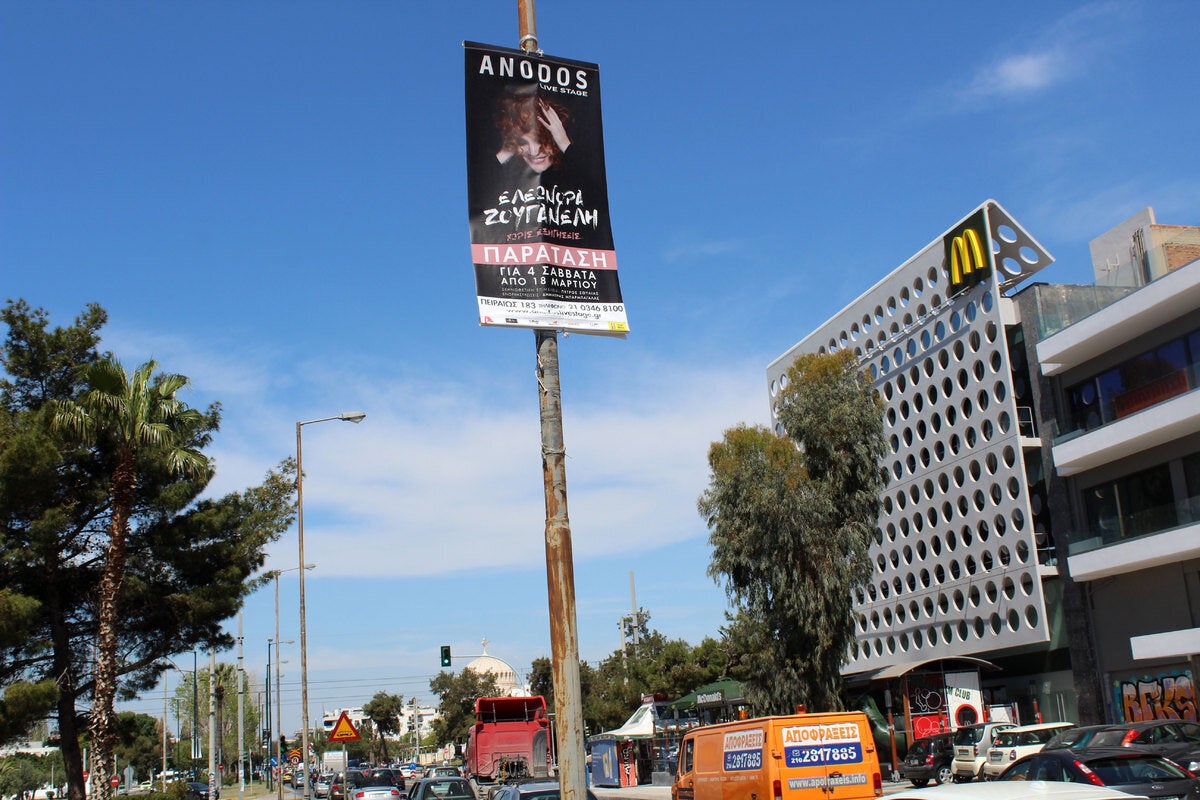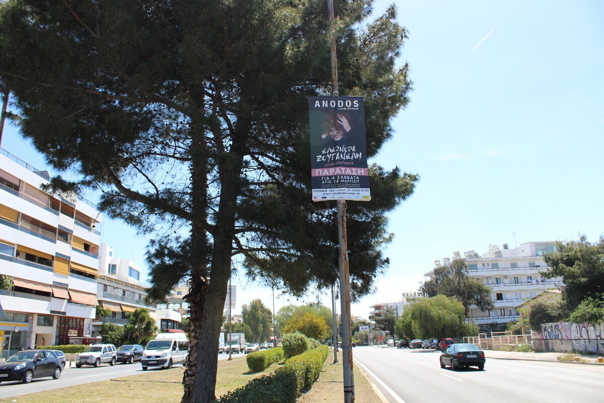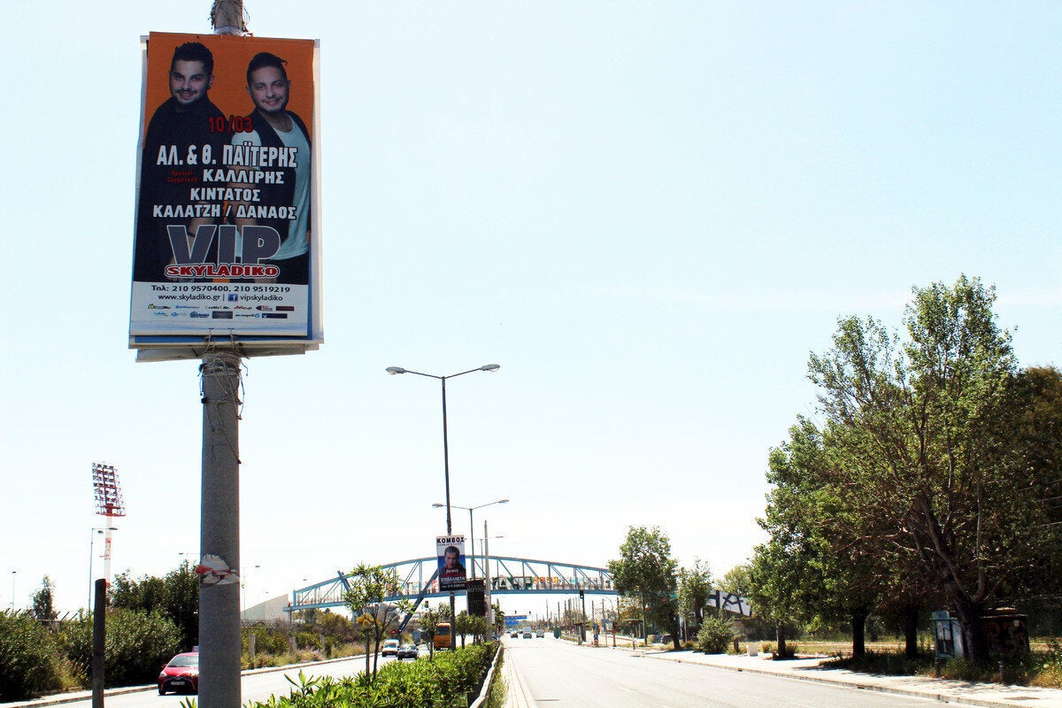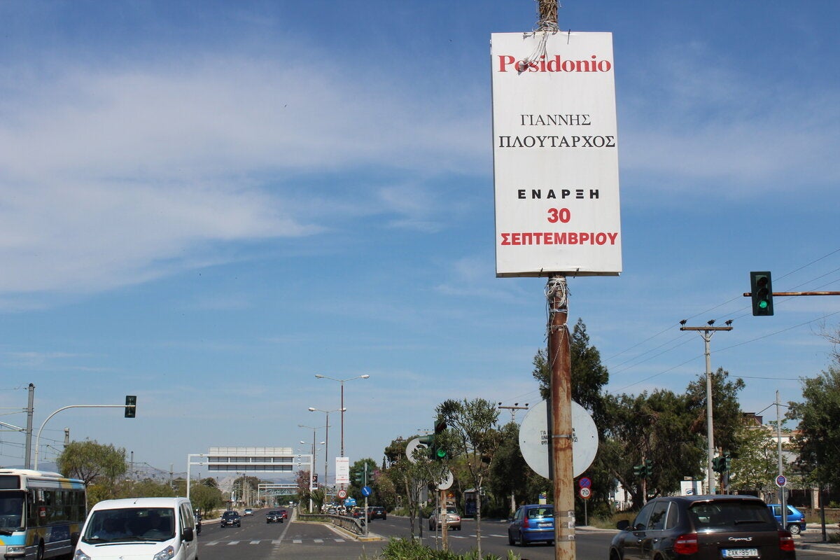 Η παραλιακή λεωφόρος της Αθήνας, στην έναρξη της τουριστικής σεζόν, από το ύψος της Αλίμου και σε όλο το τμήμα της εντός των ορίων του Δήμου Ελληνικού μέχρι την πλατεία της Γλυφάδας, έχει «τιγκάρει» ξανά κυρίως από αφίσες κέντρων διασκέδασης, αλλά και τηλεοπτικών και ραδιοφωνικών σταθμών.