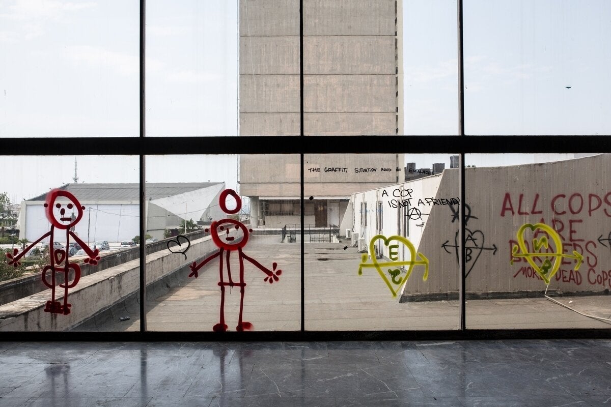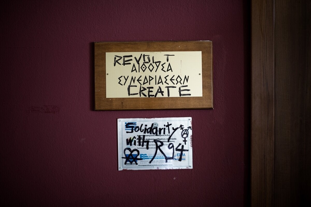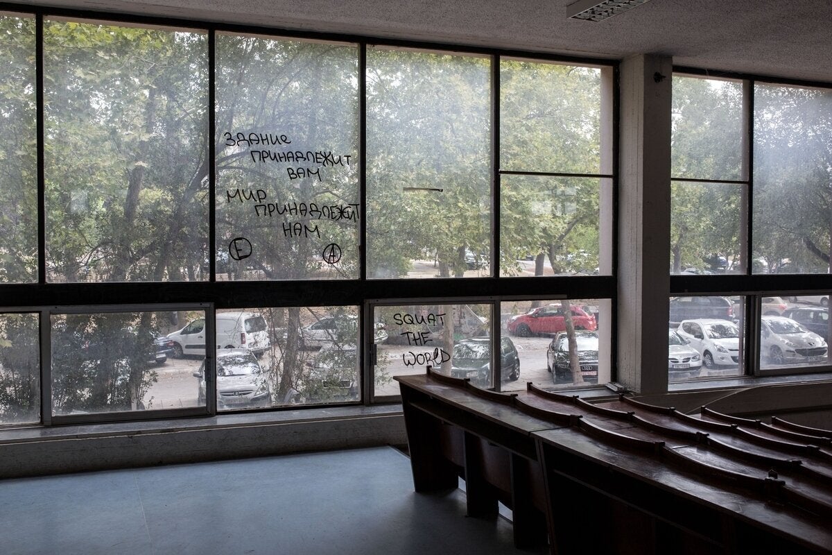 Σπασμένες πόρτες, συνθήματα στους τοίχους, βαμμένα τζάμια είναι τα «δώρα» που άφησαν πίσω τους οι καταληψίες.