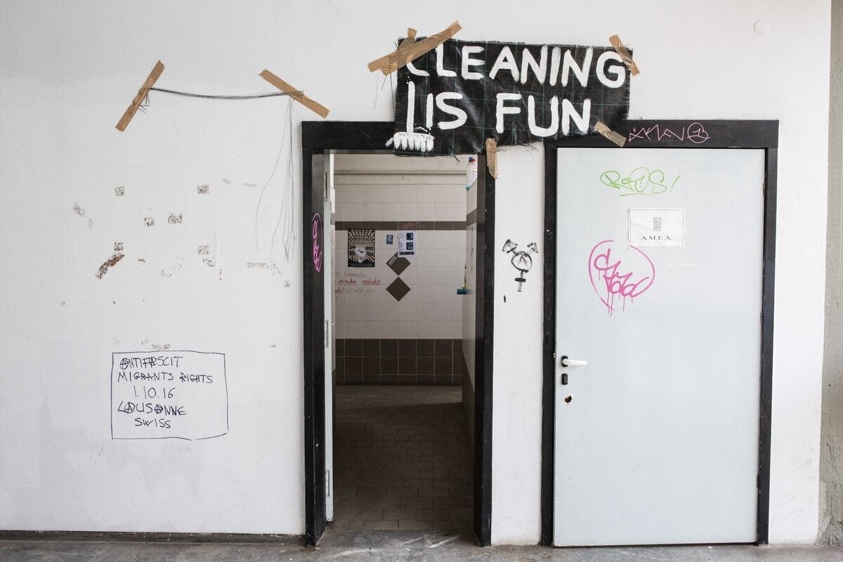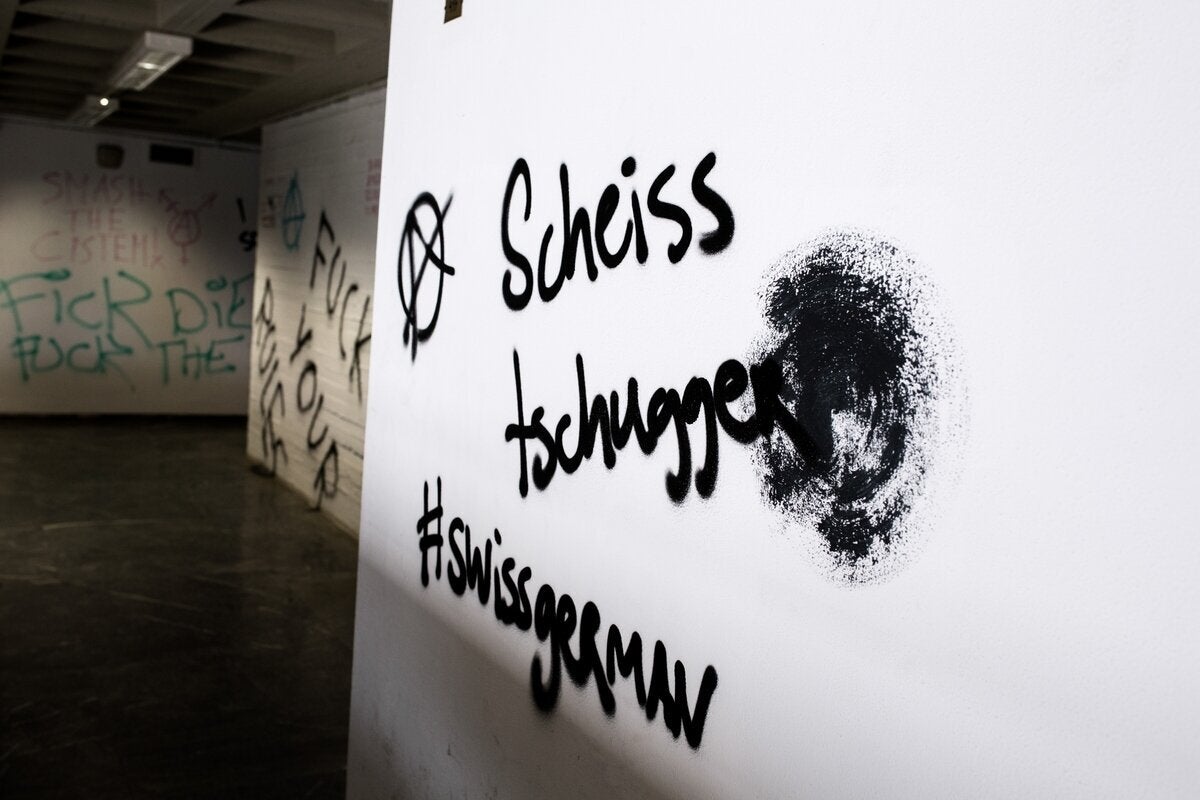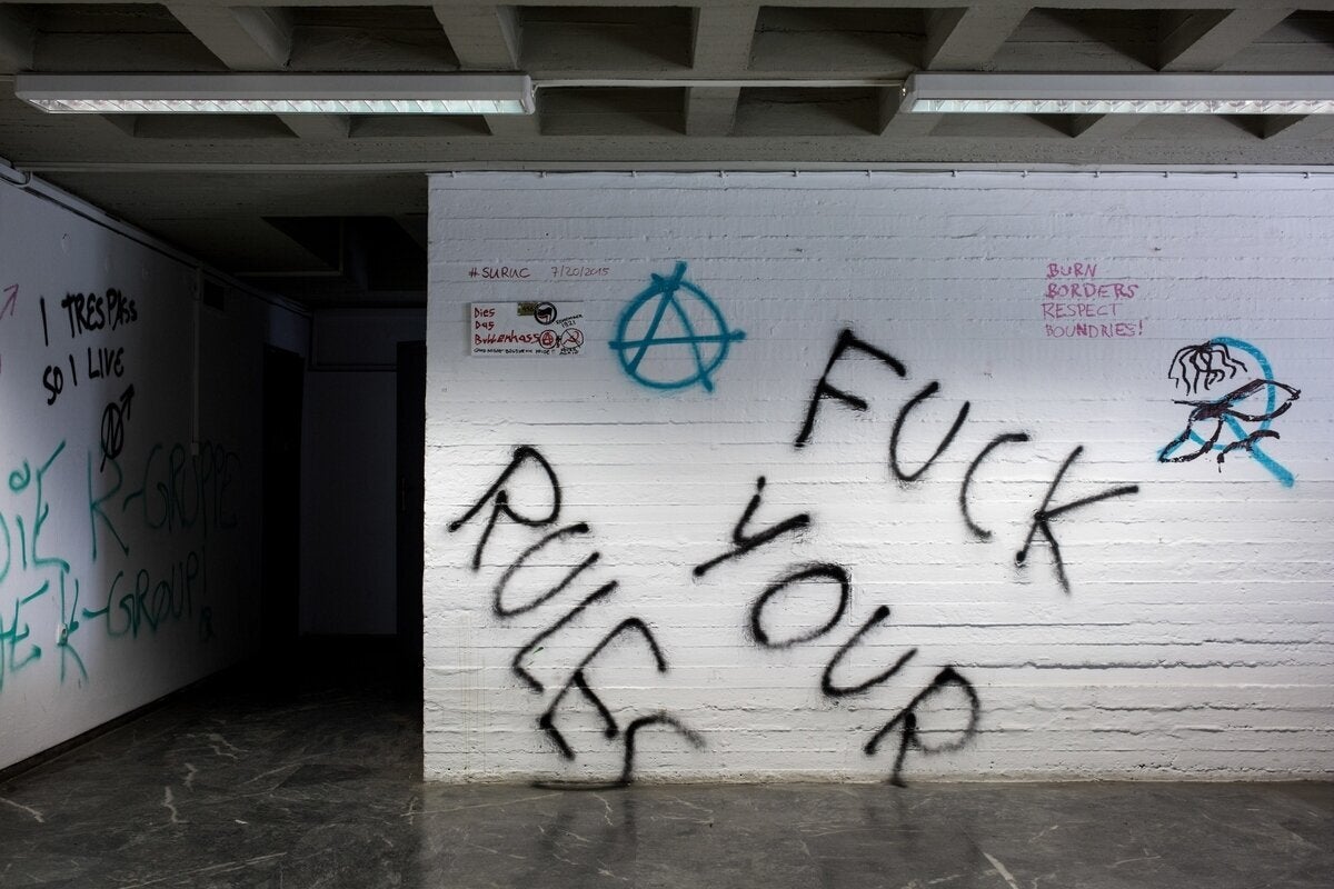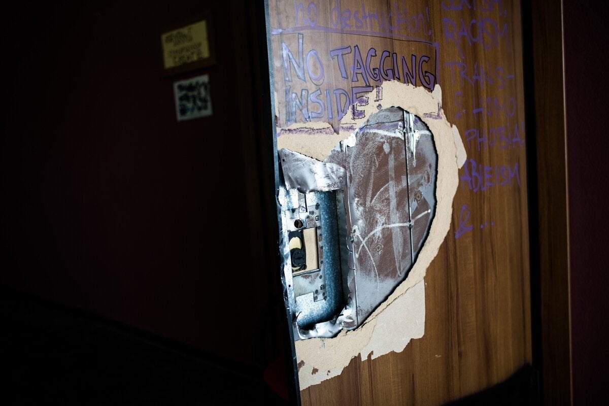 Σπασμένες πόρτες, συνθήματα στους τοίχους, βαμμένα τζάμια είναι τα «δώρα» που άφησαν πίσω τους οι καταληψίες.