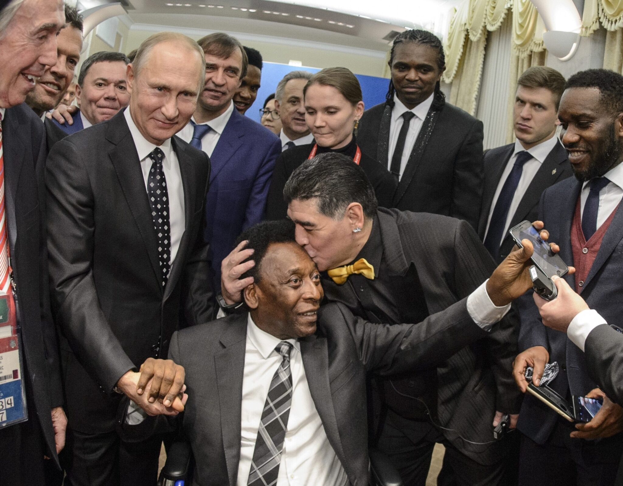 Για όσους δε γνωρίζουν, στο πλαίσιο της κλήρωσης για τους ομίλους του Παγκοσμίου Κυπέλλου 2018 που πραγματοποιήθηκε την περασμένη Παρασκευή στη Μόσχα, ο αγαπημένος των ποδοσφαιρόφιλων «Ντιεγκίτο» έσκυψε πάνω από το αναπηρικό καρότσι του έτερου θρύλου του ποδοσφαίρου αλλά ανήμπορου –λόγω κινητικών προβλημάτων– Πελέ φιλώντας τον στοργικά στο μέτωπο. Η συγκεκριμένη κίνηση αποτέλεσε την πιο δυνατή στιγμή ολόκληρης της εκδήλωσης, και προκάλεσε συγκίνηση και δέος σε όλη την υφήλιο, παρουσία μάλιστα του ίδιου του Προέδρου της Ρωσίας, Βλαντιμίρ Πούτιν. Συμπέρασμα όλων: το ποδόσφαιρο ενώνει.
