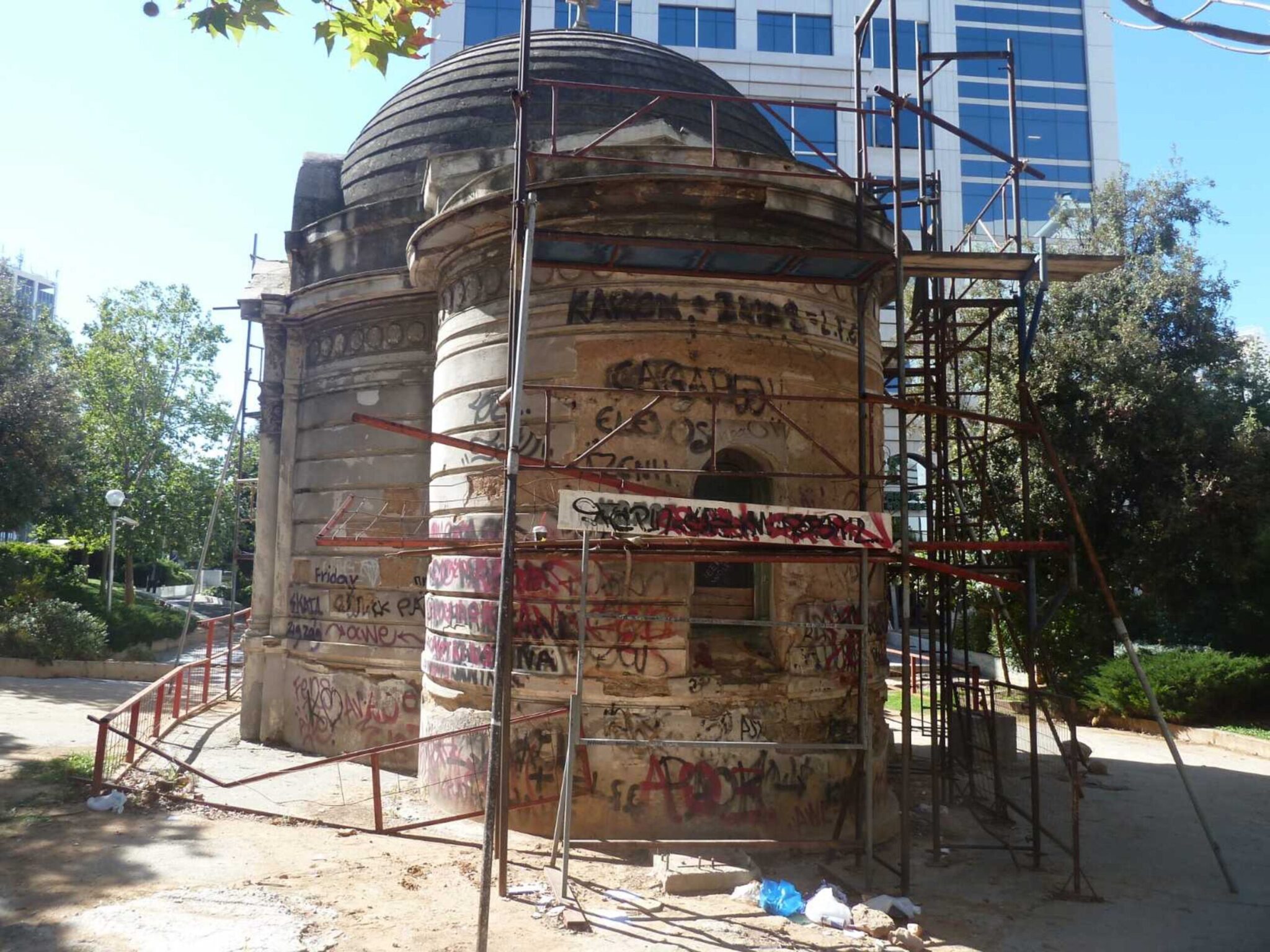 Η περιοχή ονομάσθηκε Θων, υπήρχε και λεωφορειακή γραμμή Θησείον – Θων. Η έπαυλη κτίσθηκε πριν το 1900 με σχέδια του αρχιτέκτονα Τσίλερ, αλλά ο μικρός κτητορικός ναΐσκος αφιερωμένος στον Άγιο Νικόλαο με σχέδια του αρχιτέκτονα Αναστασίου Μεταξά. Η έπαυλη Θων ανατινάχθηκε το1944 στα Δεκεμβριανά. Στο οικόπεδο λειτούργησαν διάφορες επιχειρήσεις με τη πιο γνωστή για μας τους παλιούς τη μπυραρία Κωσταρά και τελικά αγοράσθηκε από γνωστή εργοληπτική εταιρεία, η οποία στη συνέχεια έκτισε δύο τεράστια συγκροτήματα γραφείων και καταστημάτων, αλλά δεν τήρησε τη δέσμευση της για αναπαλαίωση του ναΐσκου του Αγίου Νικολάου, που είχε από το 1979 κηρυχθεί ιστορικό μνημείο, αλλά είχε εγκαταλειφθεί, κλειδωμένο με αλυσίδες και συνεχώς κατέρρεε, όπως φαίνεται στη φωτογραφία.