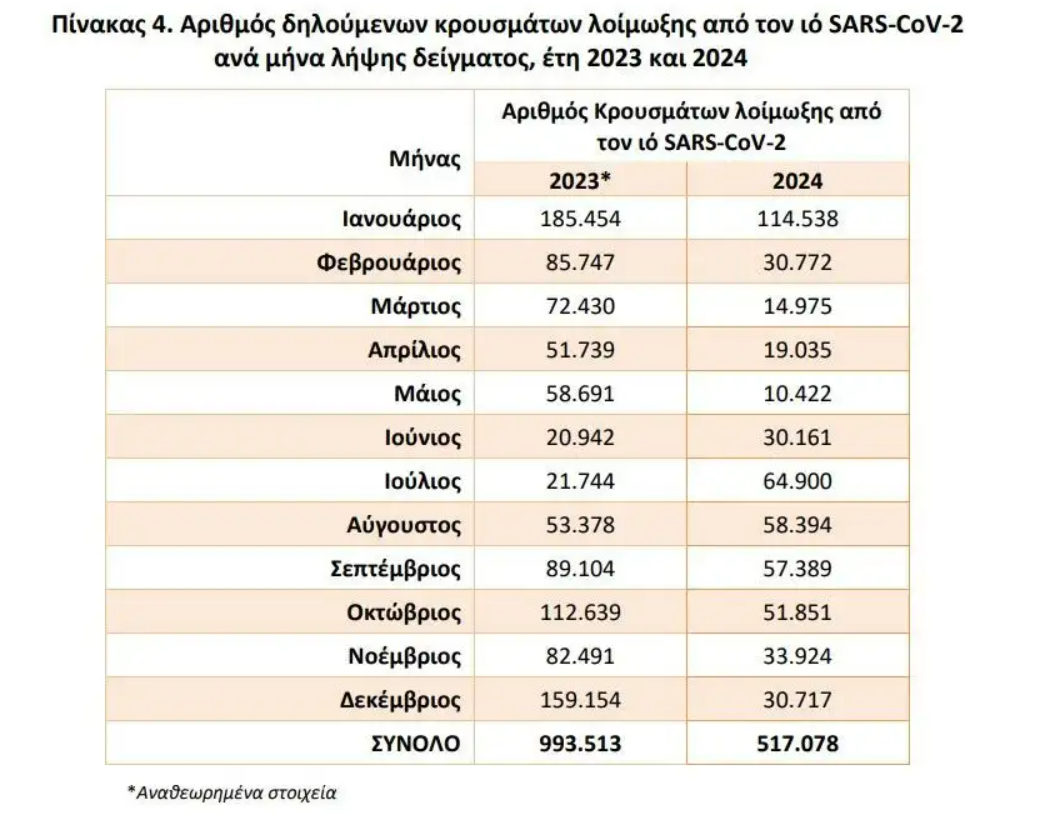 Αντίθετα, η φυματίωση παρουσίασε μείωση κατά 19,2%, δείχνοντας ότι ορισμένα νοσήματα παραμένουν υπό έλεγχο.
