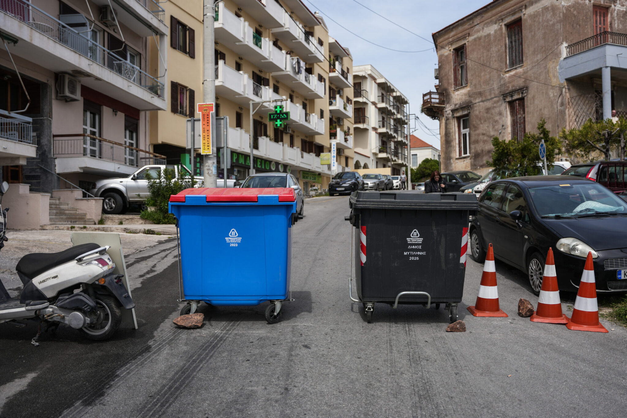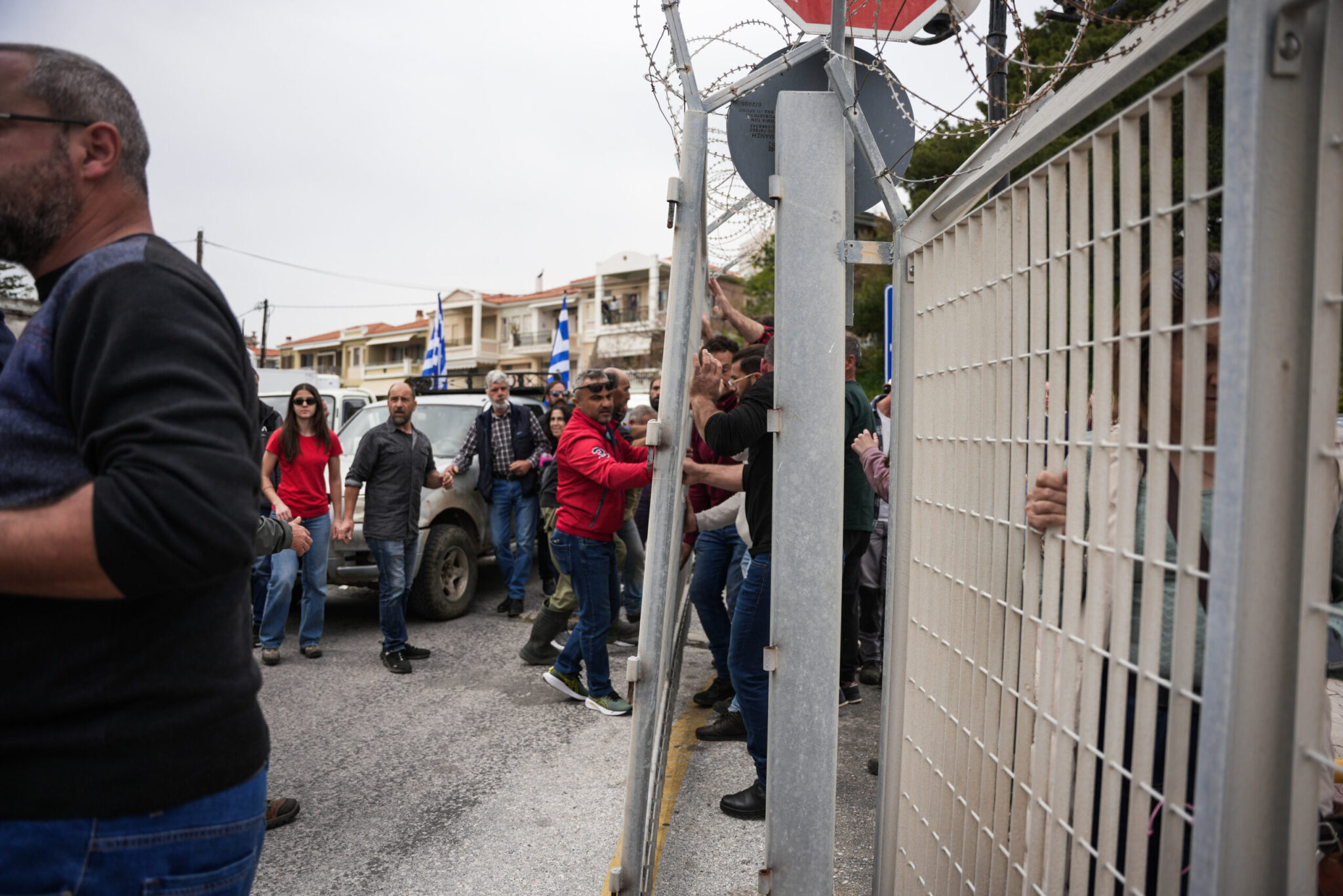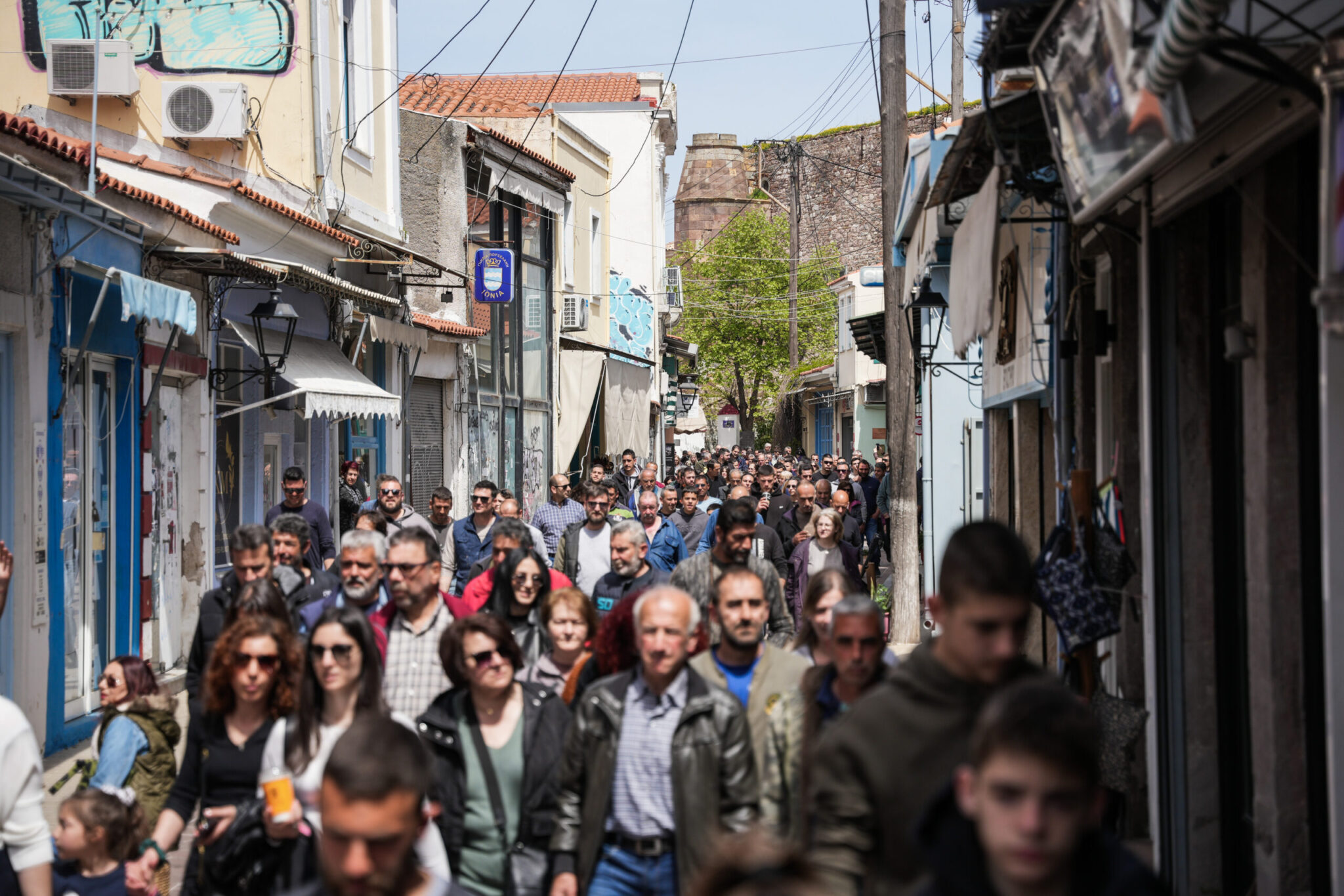Στη συνέχεια, μέσω της αγοράς της Μυτιλήνης κατευθύνθηκαν στην είσοδο του λιμανιού της πόλης, αποκλείοντας τα εξερχόμενα και εισερχόμενα Ι.Χ. και φορτηγά αυτοκίνητα.