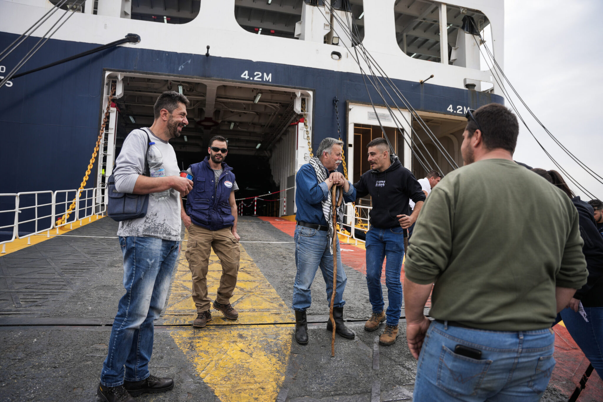 Περίπου στις 14.00 μετά το μεσημέρι, μεγάλος αριθμός διαδηλωτών μπήκε στον περίκλειστο χώρο του λιμανιού και προσέγγισε τον καταπέλτη πλοίου, αποκλείοντας την είσοδο επιβατών.