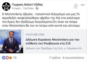 Με μια ανάρτησή του στο Facebook, ηγετικό στέλεχος της αναρχικής ομάδας «Ρουβίκωνας», απηύθυνε απειλές ενάντια στον πρόεδρο της Αξιωματικής Αντιπολίτευσης, Κυριάκο Μητσοτάκη, με αφορμή την τοποθέτηση του προέδρου της ΝΔ για την καταδρομική του Ρουβίκωνα στο ΣτΕ.