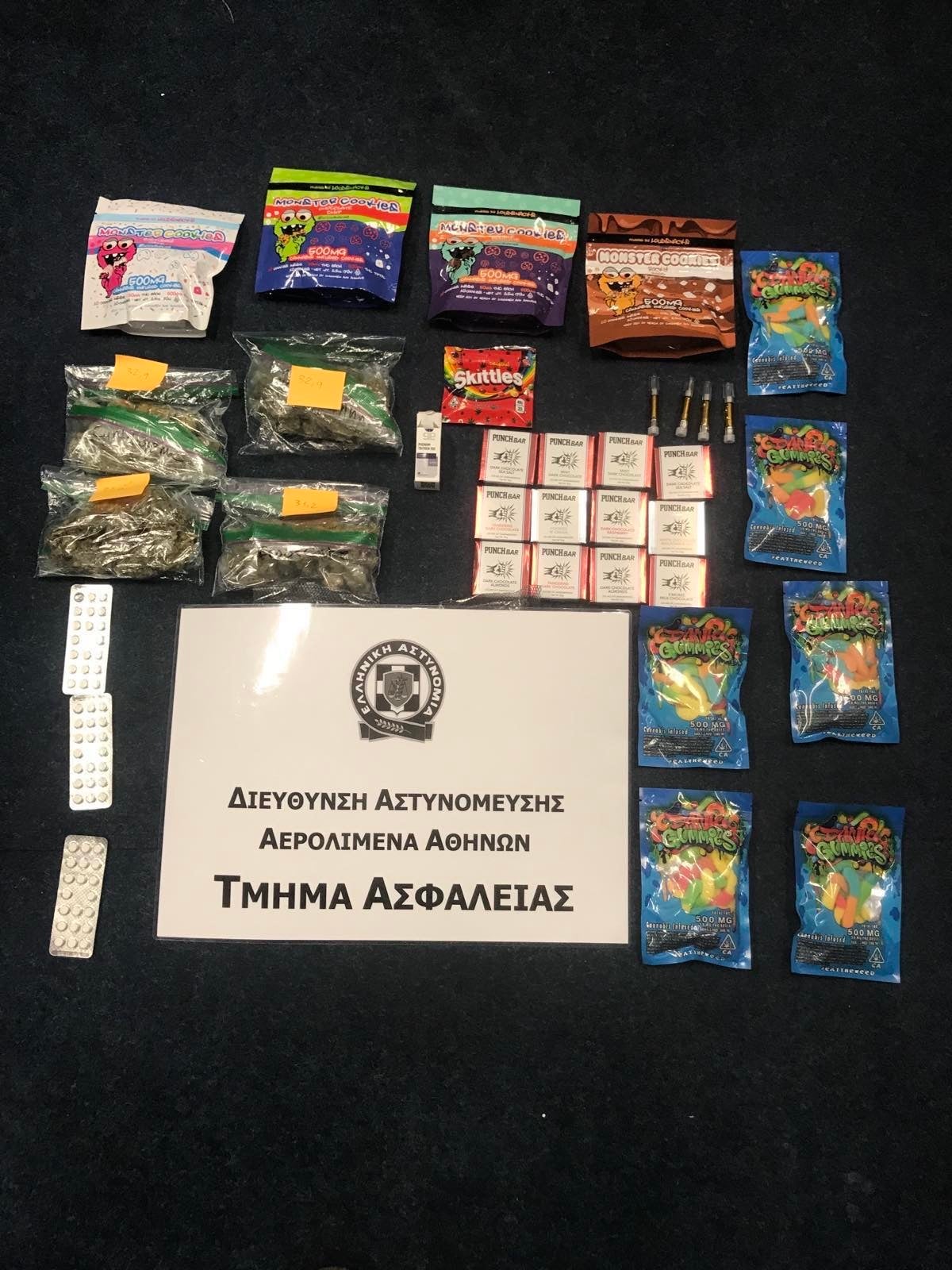 Από την πίστα του αεροδρομίου τον παρέλαβαν και τον οδήγησαν στα γραφεία της ασφάλειας, όπου μεταφέρθηκε λίγη ώρα αργότερα και η αποσκευή του. Μέσα σε αυτήν εντόπισαν συσκευασίες χασίς, φιαλίδια με έλαιο κάνναβης και αναβολικά.