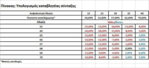 Πίνακας: Υπολογισμός καταβλητέας σύνταξης