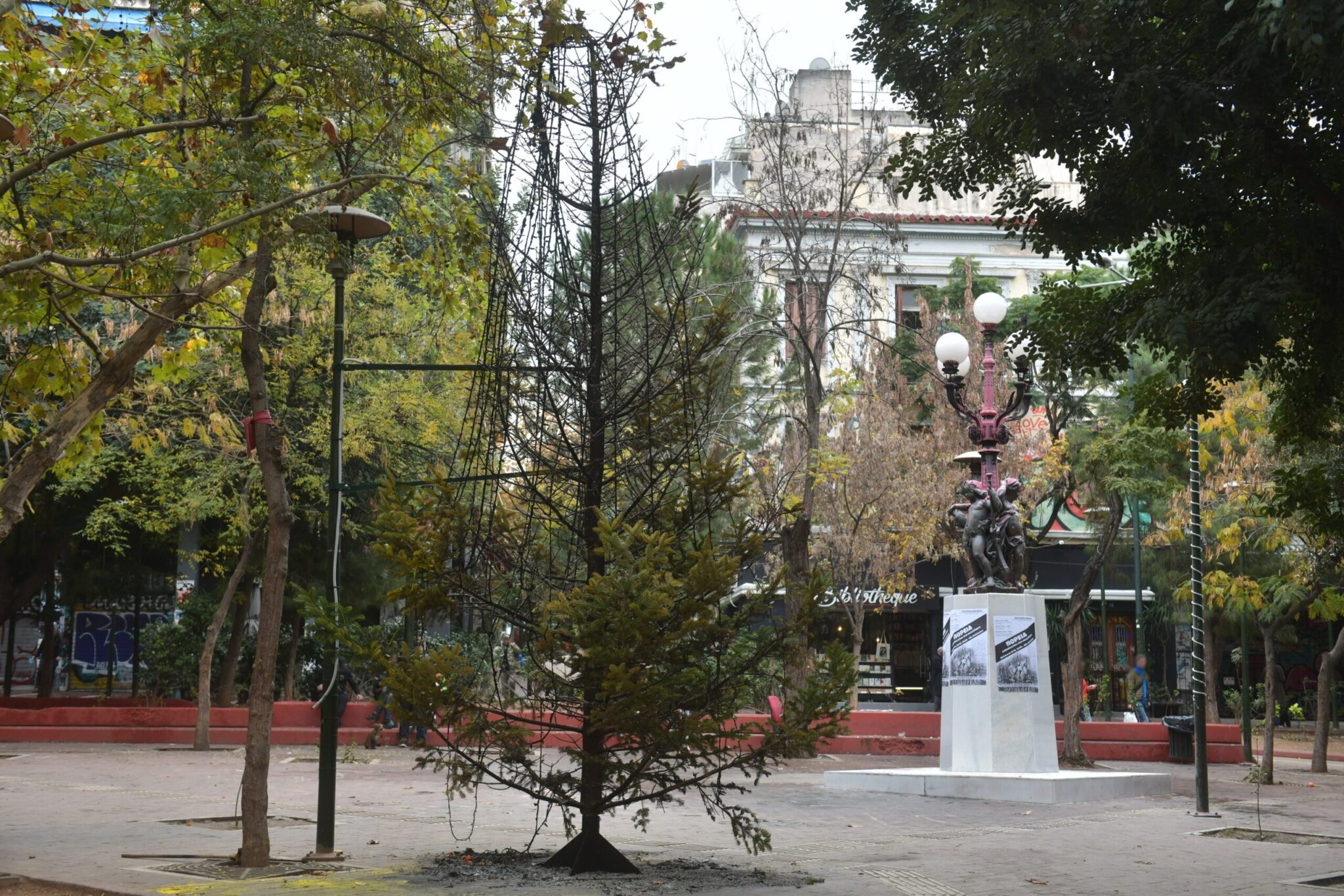 Βίντεο της πυρπόλησης του χριστουγεννιάτικου δέντρου στα Εξάρχεια