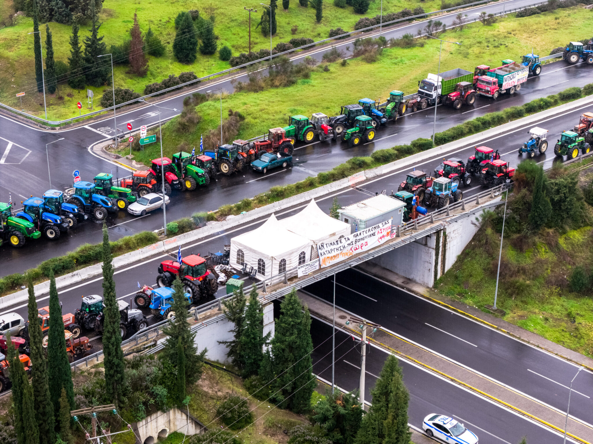Την ίδια ώρα, παραμένει το αγροτοκτηνοτροφικό μπλόκο στον κόμβο του Δερβενίου, στη διασταύρωση της παλαιάς εθνικής οδού Θεσσαλονίκης – Καβάλας με άλλες σημαντικές οδικές αρτηρίες. Οι παραγωγοί δεν θα προχωρήσουν σε καμία κινητοποίηση έως το Σάββατο 27/12, ενώ οι βάρδιες συνεχίζονται κανονικά και τα τρακτέρ μαζί με τα αγροτικά οχήματα θα βρίσκονται παρατεταγμένα στην άκρη του οδοστρώματος.