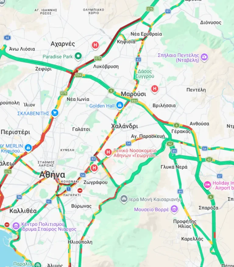 Έντονα προβλήματα καταγράφονται και σήμερα στην κυκλοφορία των οχημάτων σε αρκετούς κεντρικούς δρόμους της Αττικής, με τους οδηγούς να αντιμετωπίζουν σημαντικές καθυστερήσεις. Ο Κηφισός παραμένει για ακόμη μία ημέρα από τα πιο επιβαρυμένα σημεία του οδικού δικτύου.