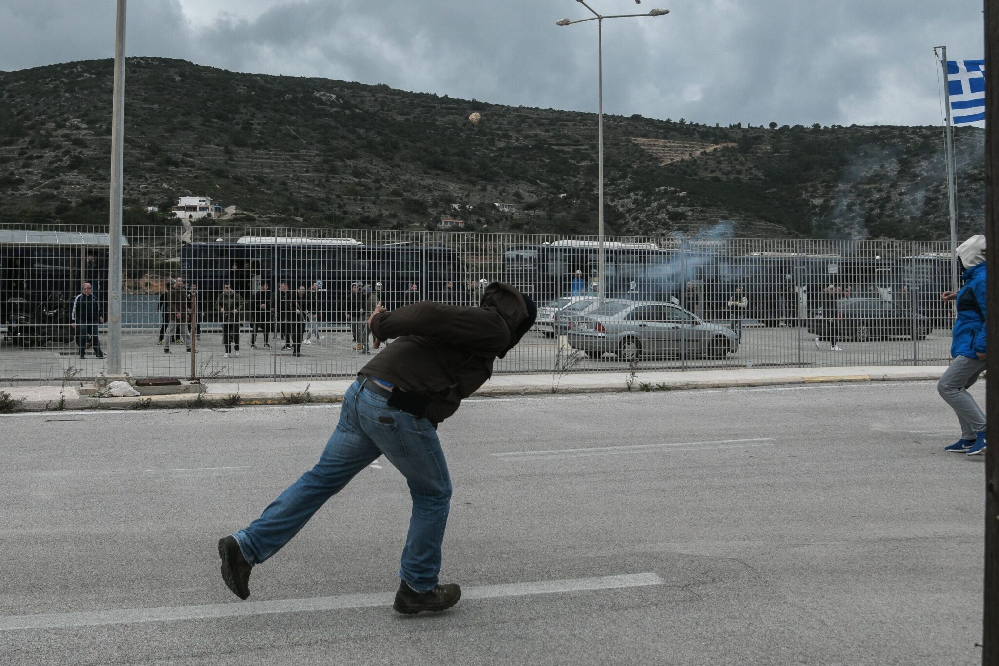 ΧίοςΧίος, Πέμπτη 27 Φεβρουαρίου 2020. Ακόμα και την ώρα που οι άνδρες των ΜΑΤ πατάνε στον καταπέλτη του πλοίου επιβιβαζόμενοι προς αναχώρηση, πίσω τους σκάνε στο νερό μολότοφ και αυτοσχέδια «πυροτεχνήματα» των διαδηλωτών.Τα ΜΑΤ αναχωρούν μέσα σε σκηνικό βίας μέχρι την τελευταία στιγμή στην Χίο. Οι συμπλοκές με διαδηλωτές συνεχίστηκαν ακόμα και στο λιμάνι, την ώρα που οι άνδες των ΜΑΤ επιβιβάζονται στο πλοίο της γραμμής για Πειραιά.Τα γκλομπ στον αέρα να σφυρίζουν...ακόμα και την ώρα την αναχώρησης των ΜΑΤ από το νησί της Χίου.Άνδρες των ΜΑΤ με πολιτική περιβολή κατά την επιβίβαση στο πλοίο από την Χίο για τον Πειραιά - αλλά με τον ειδικό εξοπλισμό ανά χείρας... Διαδηλωτής ή «διαδηλωτής»; Με την πέτρα στο χέρι παραμονεύει... με τις κλούβες των ΜΑΤ στο οπτικό του πεδίο.Εικόνα «ρουτίνας» στην Χίο τα τελευταία 24ωρα, μέχρι και την ώρα της αναχώρησης των ΜΑΤ από το νησί για τον Πειραιά. Διαδηλωτής επί το έργον με στόχο τις κλούβες των ΜΑΤ στο λιμάνι της Χίου.Οι άτυχοι που παρκάρισαν τα αυτοκίνητά τους το πρωί της Πέμπτης 27 Φεβρουαρίου στο λιμάνι της Χίου, πλήρωσαν τα «σπασμένα».Οι τελευταίοι άνδρες των ΜΑΤ με τις κλούβες, επιβιβάζονται προς αναχώρηση από το νησί της Χίου με προορισμό τον Πειραιά.