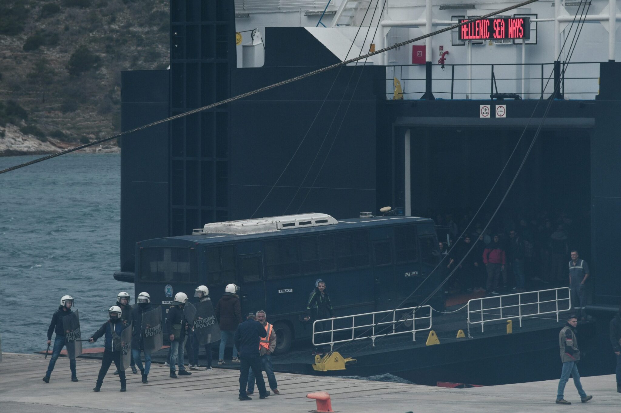 Χίος: Mετ’ επεισοδίων ακόμα και η αναχώρηση των ΜΑΤ στο λιμάνι (βίντεο-φωτογραφίες)