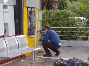 Οι δράστες, σύμφωνα με πληροφορίες, δεν κατάφεραν να αφαιρέσουν τις κασετίνες με τα χρήματα από το ΑΤΜ.