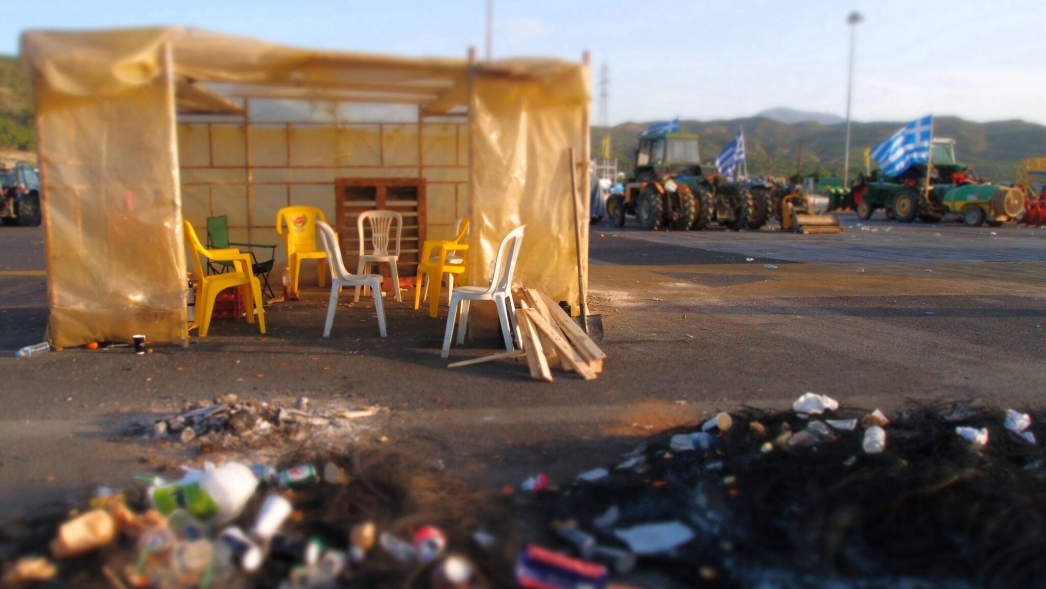 Τα χαράματα στο μπλόκο του Ισθμού δεν έχει διαφωνίες μα ούτε και συμφωνίες, οι σιδερένιοι πρωταγωνιστές στέκουν σβηστοί και παγωμένοι, περιμένουν.