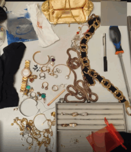 Κατά την έρευνα των συναδέλφων τους από την ασφάλεια προέκυψε ότι μία εβδομάδα νωρίτερα οι ίδιο δράστες είχαν αναρριχηθεί σε διαμέρισμα 1ου ορόφου, στη Γλυφάδα, το είχαν διαρρήξει και είχαν αρπάξει από μέσα ένα χρηματοκιβώτιο, το οποίο περιείχε χρυσαφικά συνολικής αξίας 100.000 ευρώ, 3 ρολόγια αξίας 15.000 ευρώ, διάφορες γυναικείες τσάντες συνολικής αξίας άνω των 5.000 ευρώ, καθώς και διάφορα προσωπικά έγγραφα του ενοίκου και της συζύγου του.