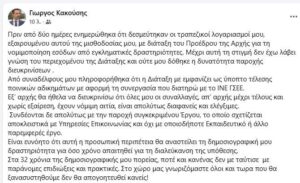 Η ανάρτηση από τον δημοσιογράφο Γιώργο Κακούση