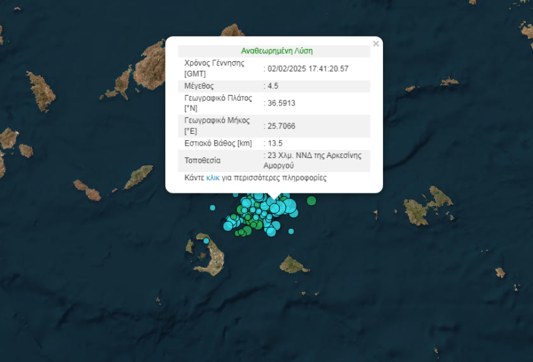 Δύο ισχυρές σεισμικές δονήσεις σημειώθηκαν μέσα σε 4 λεπτά, ανοιχτά της Αμοργού.
