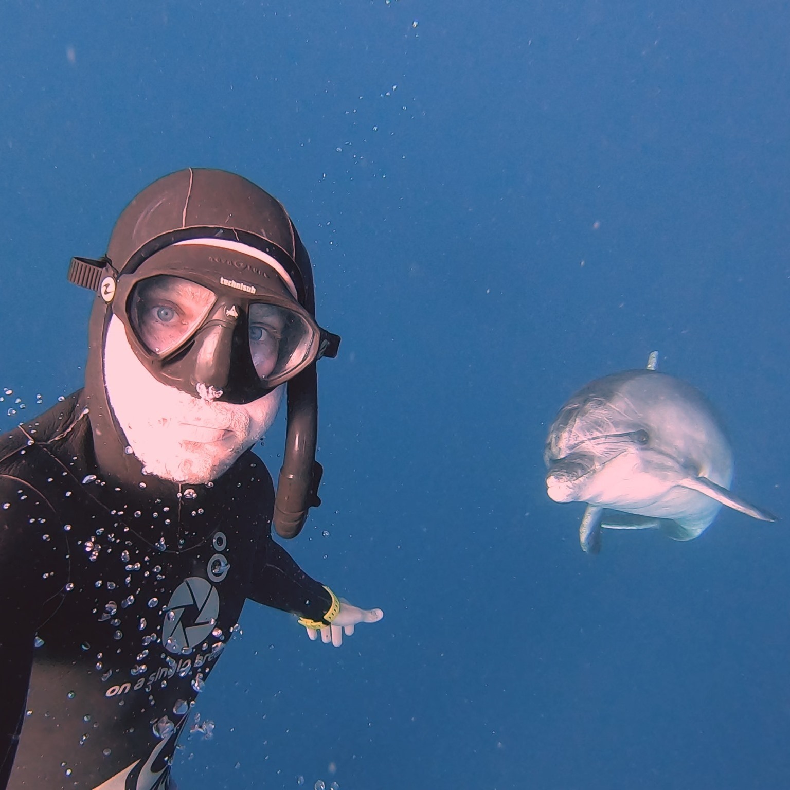 Ο Tζόνι Μπόου έκανε καταδύσεις με αναπνευστήρα στα ανοικτά των ακτών της Κορίνθου το καλοκαίρι του 2020, όταν ξαφνικά βρέθηκε πρόσωπο με πρόσωπο με δύο άγρια δελφίνια. Πάγωσε, υποθέτοντας ότι τα δελφίνια θα τον προσπερνούσαν, αλλά το ένα δεν ήθελε να φύγει.