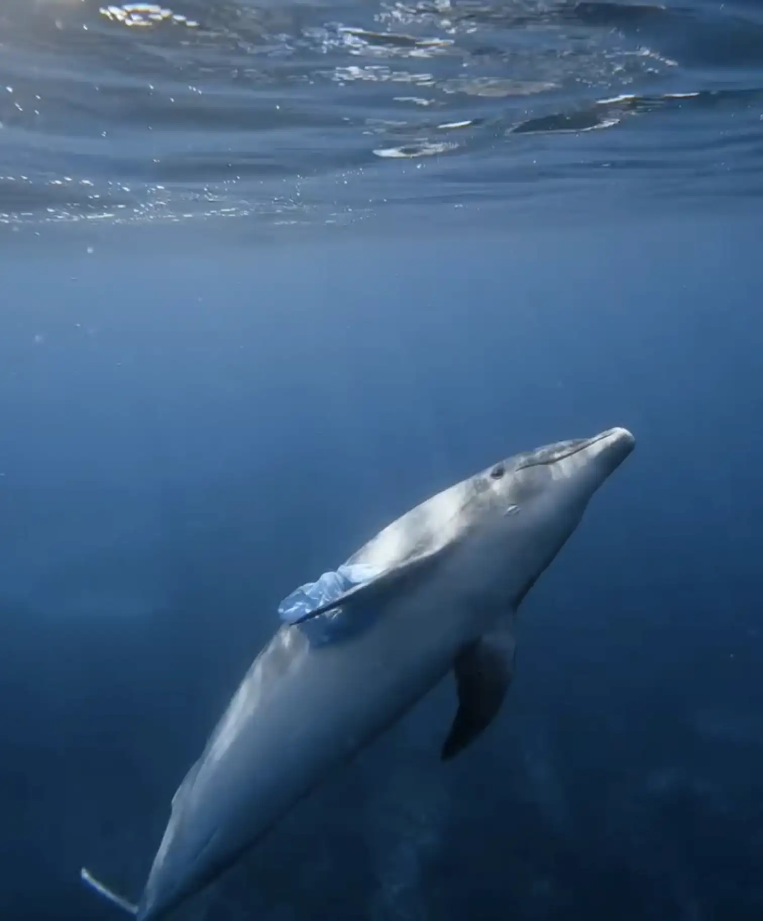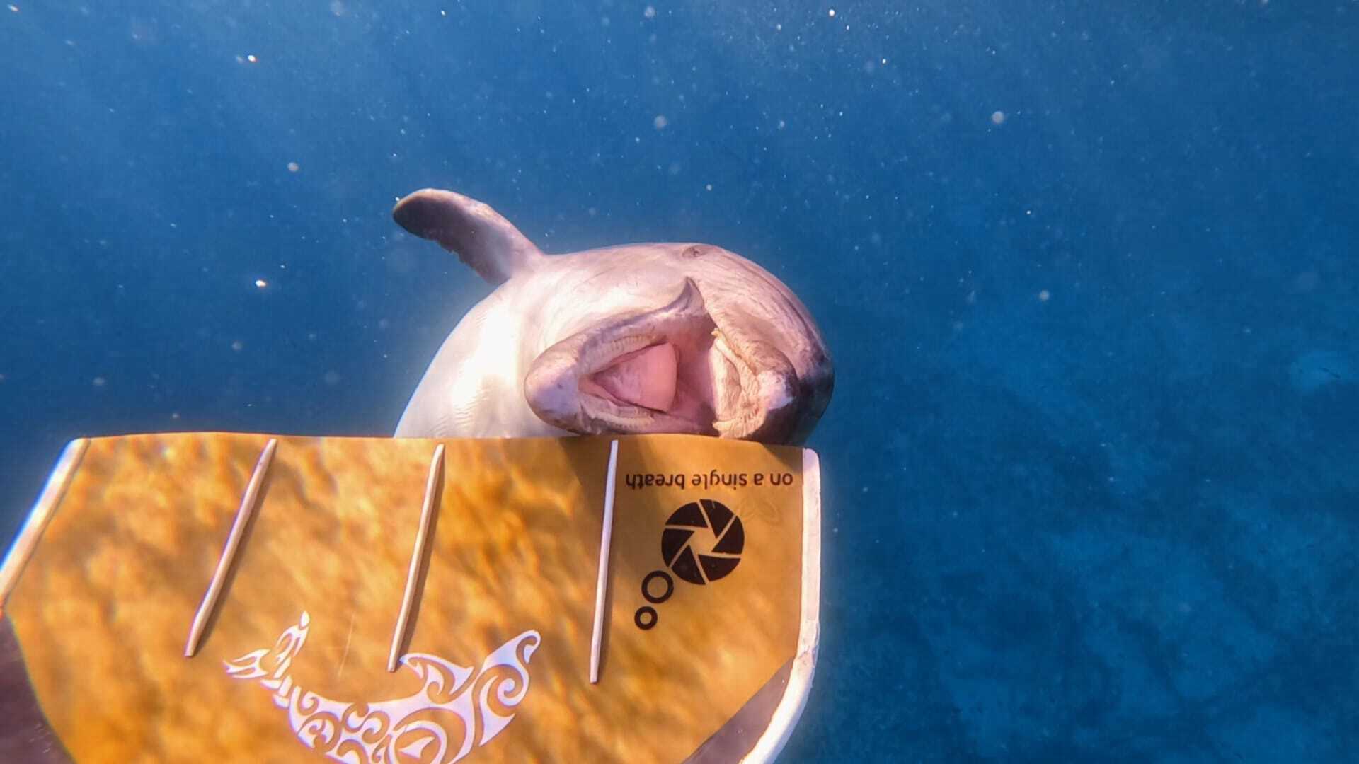 Μέχρι που μια μέρα, την άνοιξη του 2021, το δελφίνι εμφανίστηκε με κάτι περίεργο κρυμμένο κάτω από το πτερύγιο του.