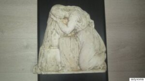 Αναλυτικότερα, το πρώτο αρχαίο αντικείμενο αφορά σε παράσταση γυναικείας μορφής, τριγωνικού σχήματος, 37 εκ. ύψους, 39 εκ. πλάτους και 9 εκ. πάχους. Σύμφωνα με αρμόδιο αρχαιολόγο της Εφορείας Αρχαιοτήτων Ιωαννίνων, τα τεχνοτροπικά χαρακτηριστικά του συνηγορούν υπέρ μιας χρονολόγησης πιθανώς στον 4ο αιώνα πΧ, υπαγόμενο στις διατάξεις της νομοθεσίας για την προστασία των αρχαιοτήτων και εν γένει της πολιτιστικής κληρονομιάς.
