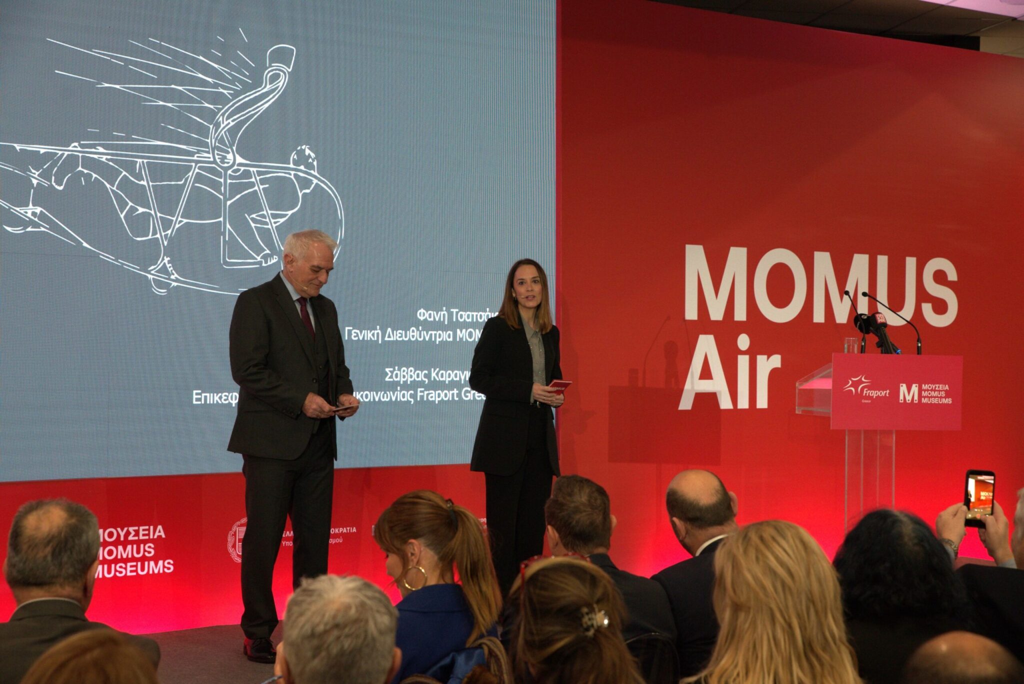 Την εκδήλωση συντόνισαν η Γενική Διευθύντρια του MOMUS, κ. Φανή Τσατσάια και ο Επικεφαλής Εταιρικής Επικοινωνίας της Fraport Greece, κ. Σάββας Καραγιάννης.