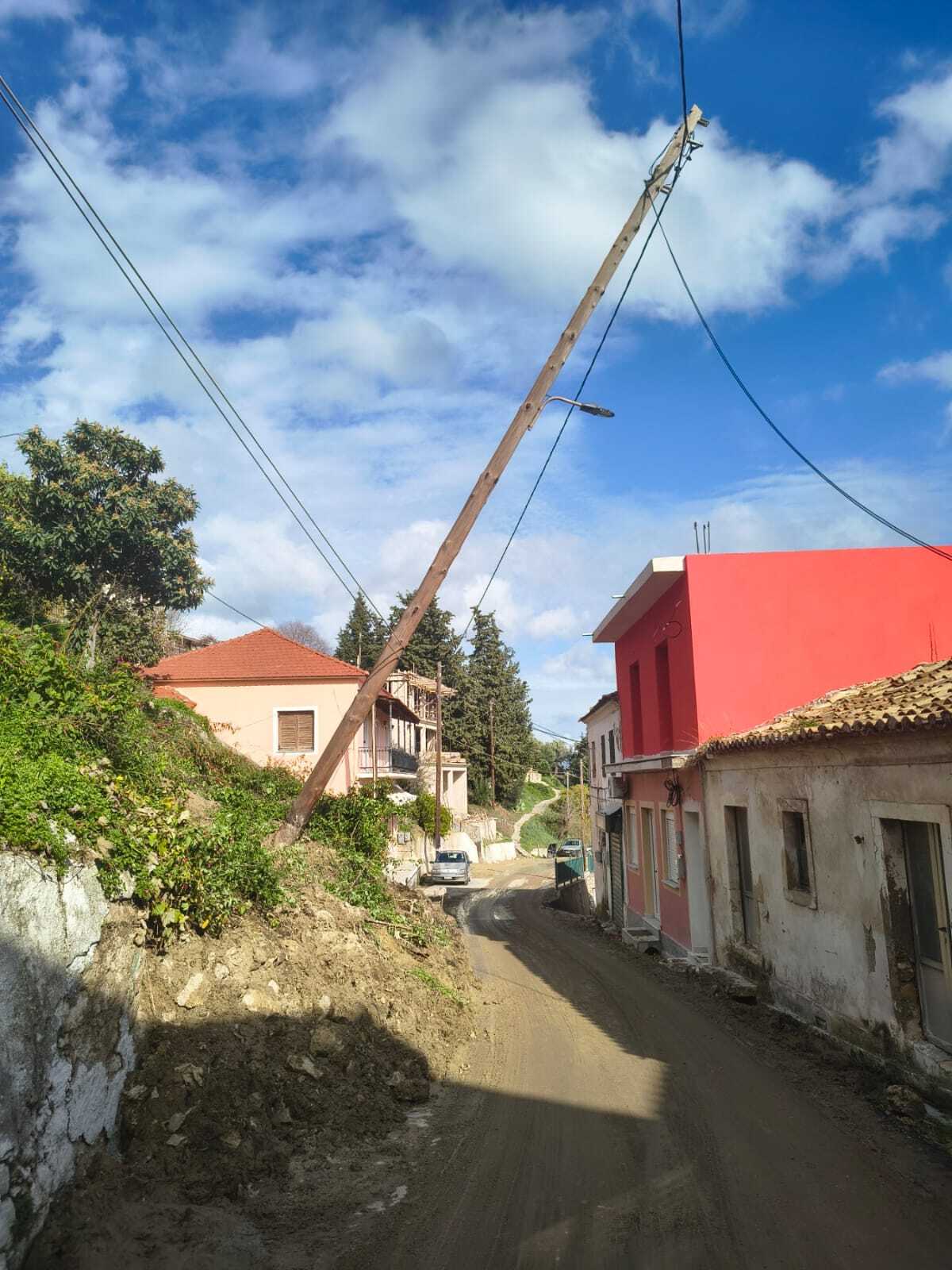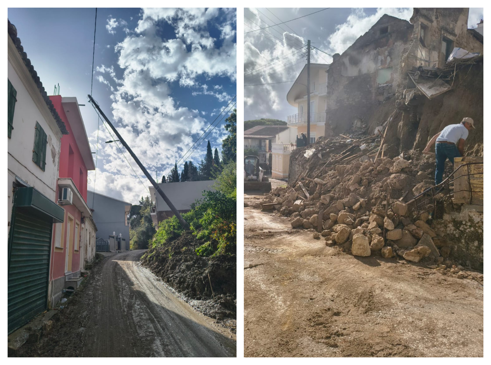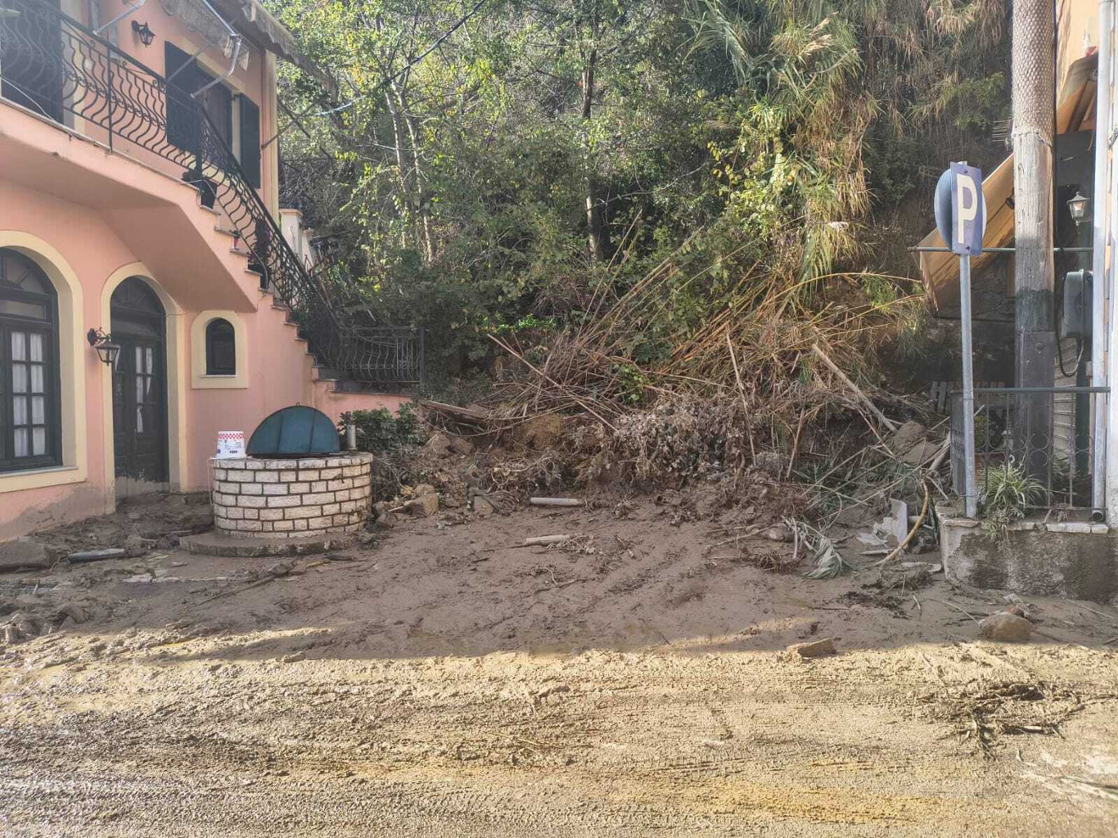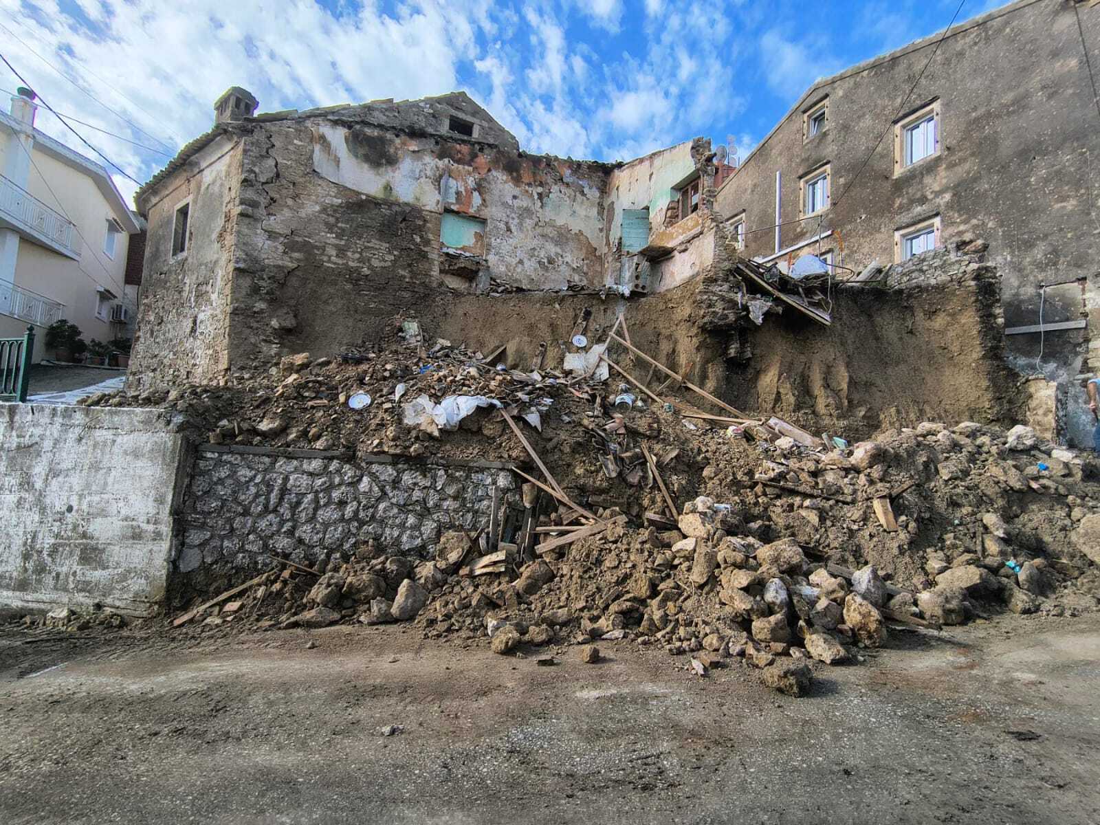 Στους Καρουσάδες κατέρρευσε διώροφο κτίριο, χωρίς να υπάρξουν τραυματισμοί, ενώ το χωριό παραμένει αποκλεισμένο. Πλησίον του αστυνομικού τμήματος της περιοχής κατέρρευσε μια ολόκληρη πλαγιά, με αποτέλεσμα να προκληθούν ζημιές σε σταθμευμένα περιπολικά.
