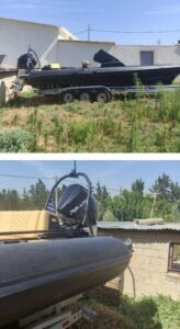 Κατά τη διάρκεια ερευνών που πραγματοποιήθηκαν σε σπίτι στα Άνω Λιόσια, βρέθηκε το σκάφος και στον ίδιο χώρο επίσης βρέθηκαν και κατασχέθηκαν: Χίλια διακόσια πενήντα φυσίγγια λειόκανου κυνηγετικού όπλου, διαμετρήματος 12 cal, 10 κροτίδες, μία συσκευή ηλεκτρικής εκκένωσης χειρός (teaser), ένα κοντάκιο κυνηγετικού όπλου με αορτήρα, ένας μηχανισμός σκανδάλης πυροβόλου όπλου, δύο χειρολαβές κυνηγετικού όπλου (πάπια), δύο θαλάμες φυσιγγίων κυνηγετικού όπλου, μία σιδηρογροθιά, ένα πτυσσόμενο στιλέτο μήκους 22 εκ. με μήκος λάμας 10cm, ένας πτυσσόμενος σουγιάς μήκους 21cm με μήκος λάμας 10cm, ένας πτυσσόμενος σουγιάς μήκους 20,5cm με μήκος λάμας 9cm, 10 καταλύτες οχημάτων επιμελώς κομμένοι, ένα tablet, ένας φορητός υπολογιστής, μία σφραγίδα με τυπογραφικό ανάγλυφο, 38 usb sticks, τέσσερις κάρτες μνήμης, εννέα συσκευές πλοήγησης (gps) και μία κεντρική μονάδα ηλεκτρονικού υπολογιστή.