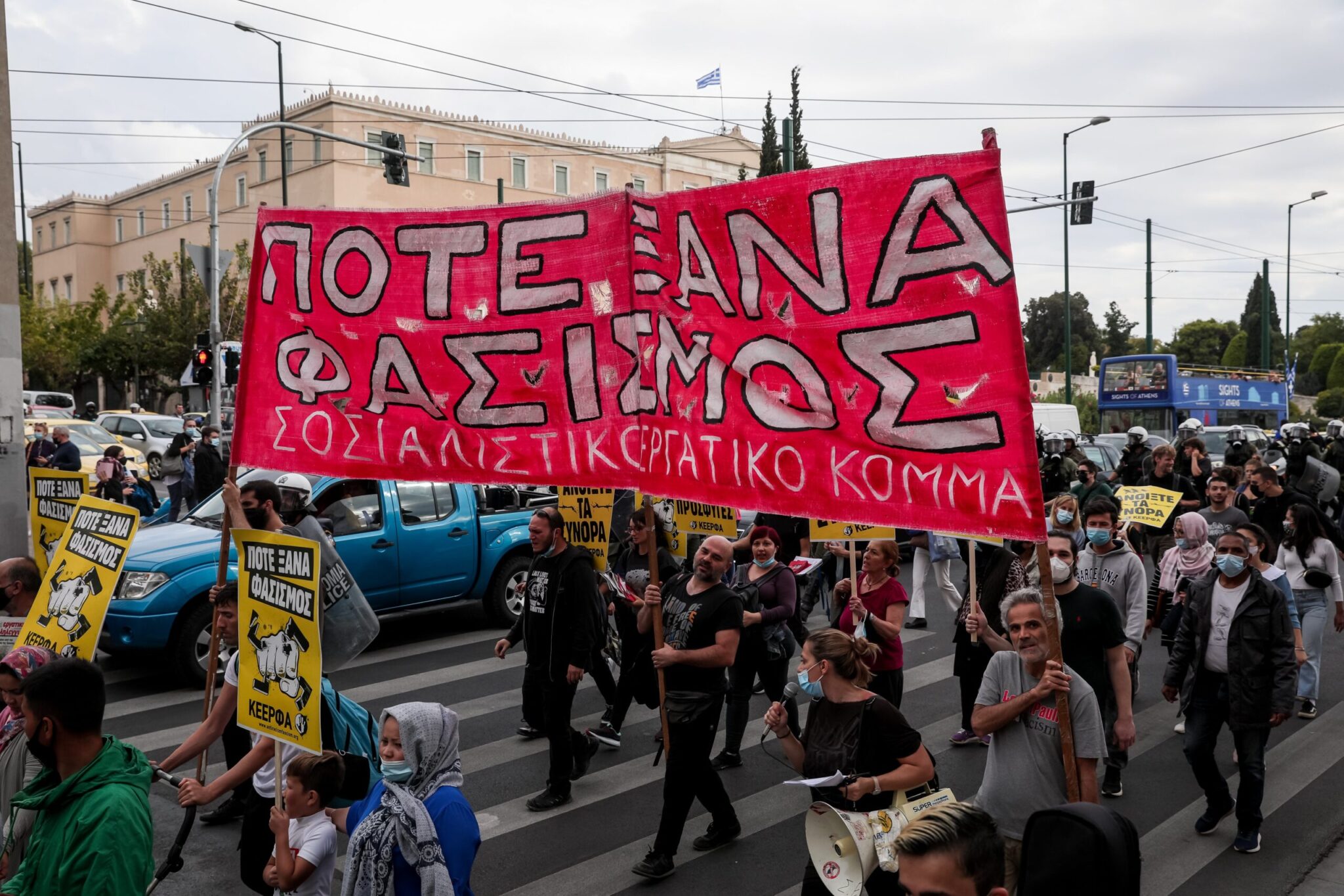 «Αυτό που συμβαίνει αυτή τη στιγμή είναι απαράδεκτο. Έναν χρόνο μετά την καταδίκη της Χρυσής Αυγής μια μεγάλη αντιφασιστική πορεία παρεμποδίζεται από την αστυνομιία και δέχεται χημικά χωρίς κανέναν λόγο. Πήγα στον επικεφαλής της αστυνομίας και ζήτησα τον λόγο, ποιος έχει δώσει αυτές τις εντολές και που αποσκοπούν. Δεν πήρα καμία ουσιαστική απάντηση.Η αντιμετώπιση του κόσμου που παλεύει τον φασισμό από την κυβέρνηση είναι ενδεικτική της ανοχής της στο αυγό του φιδιού».
