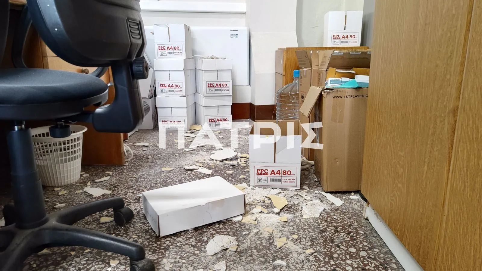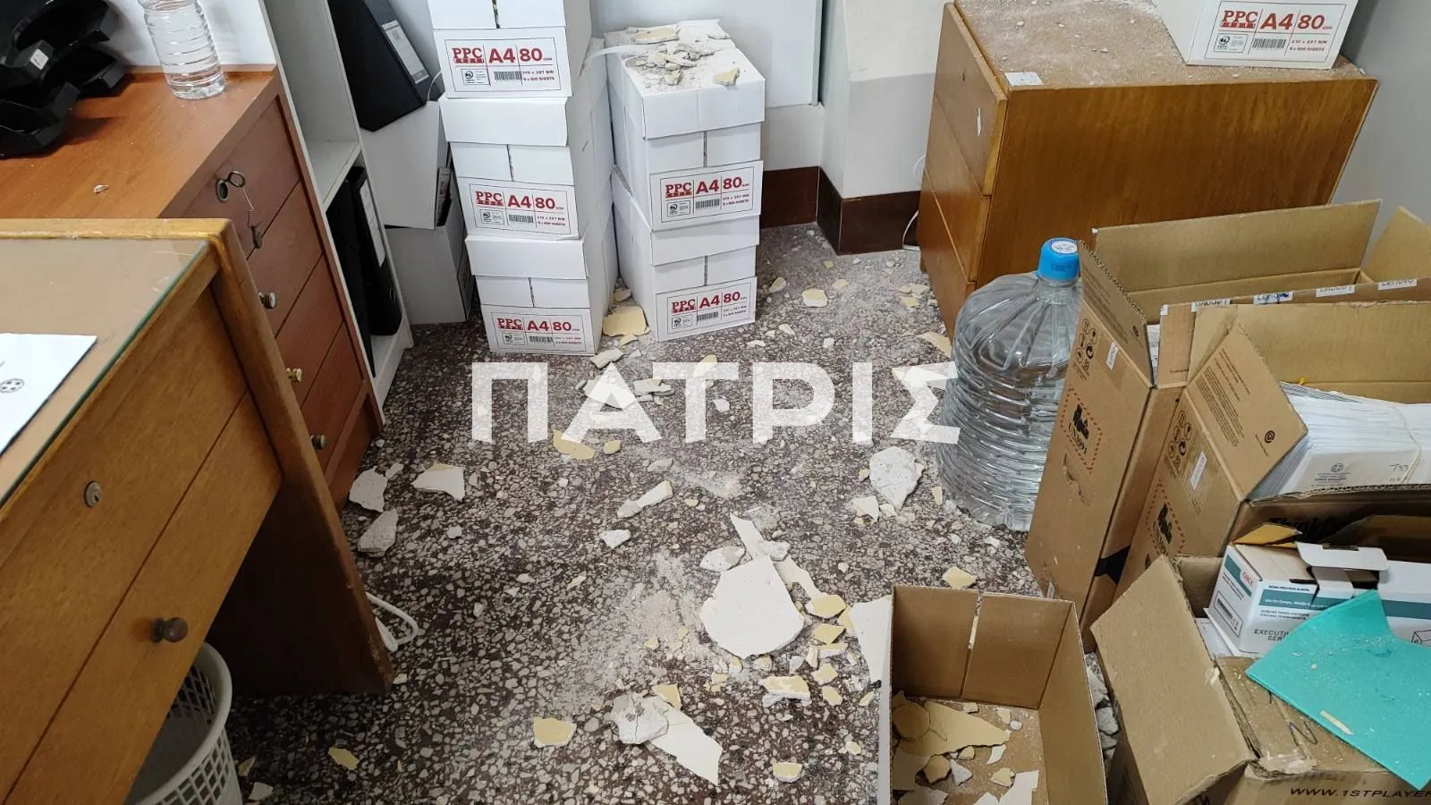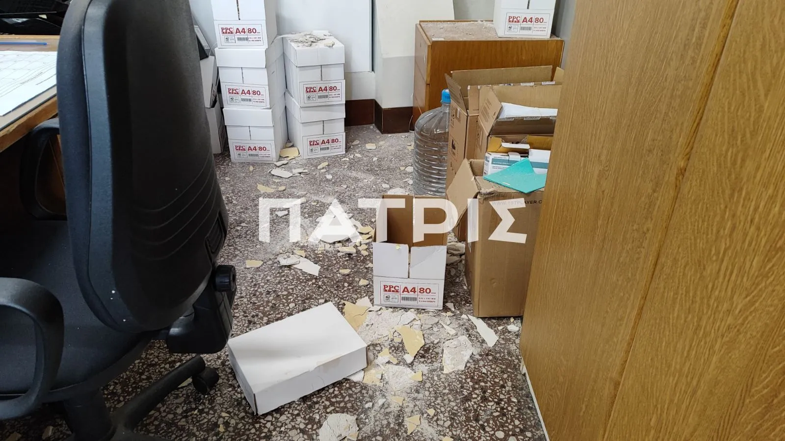 Σύμφωνα με πληροφορίες του patris.gr, στο γραφείο Ταμειακής Βεβαίωσης στη Λότζια έπεσαν ξαφνικά κομμάτια από σοβά στο πάτωμα μπροστά στα έκπληκτα μάτια εργαζομένων και πολιτών.