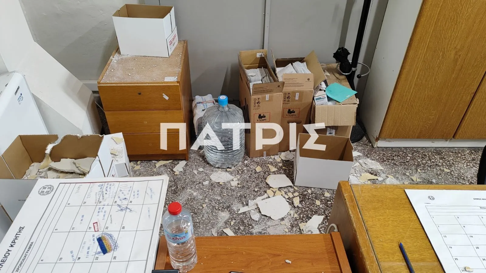Σύμφωνα με πληροφορίες του patris.gr, στο γραφείο Ταμειακής Βεβαίωσης στη Λότζια έπεσαν ξαφνικά κομμάτια από σοβά στο πάτωμα μπροστά στα έκπληκτα μάτια εργαζομένων και πολιτών.