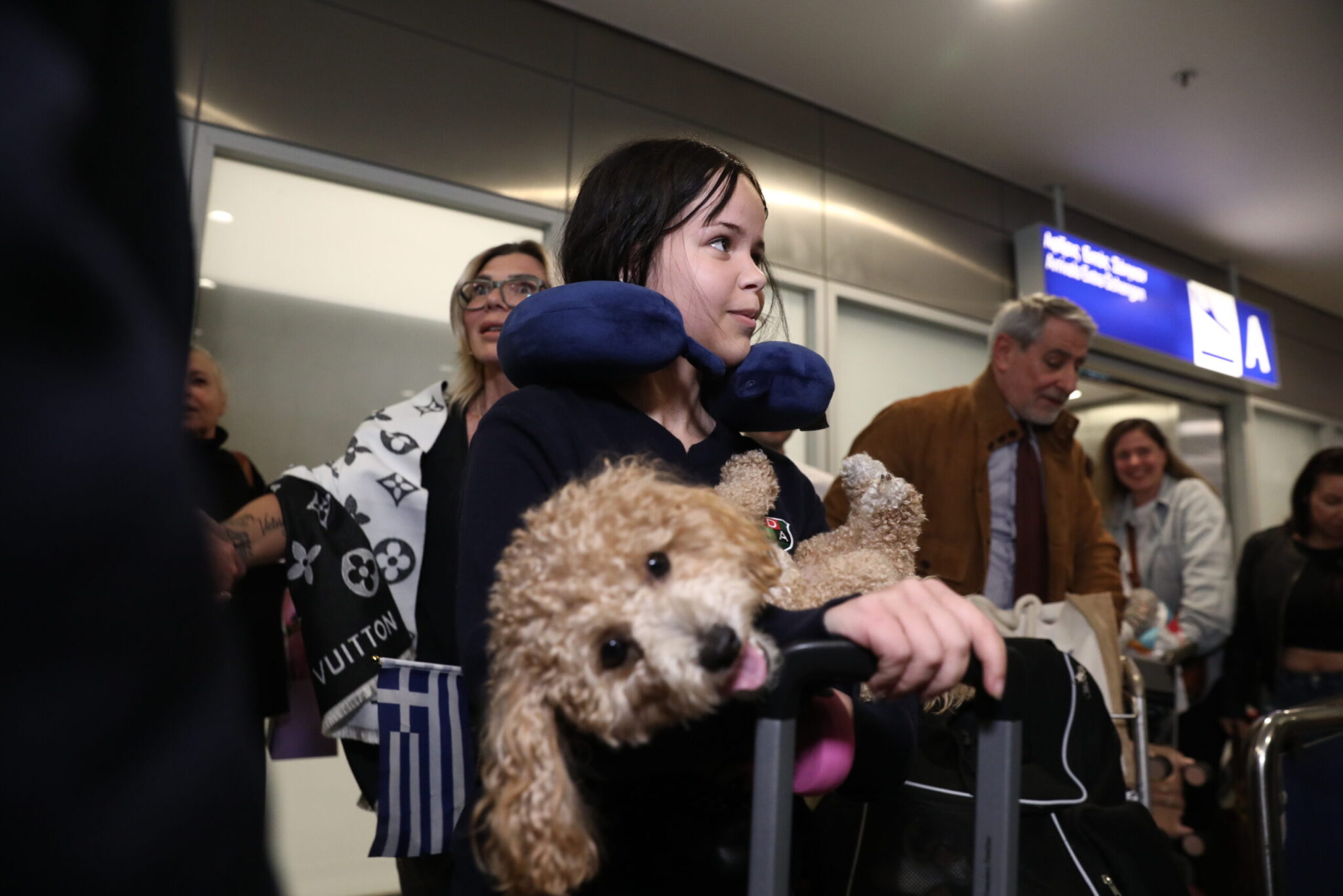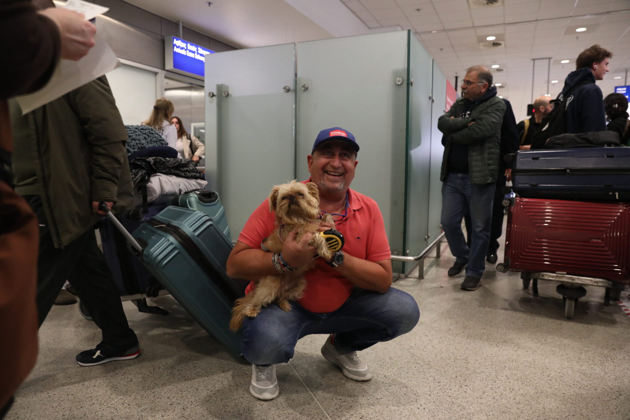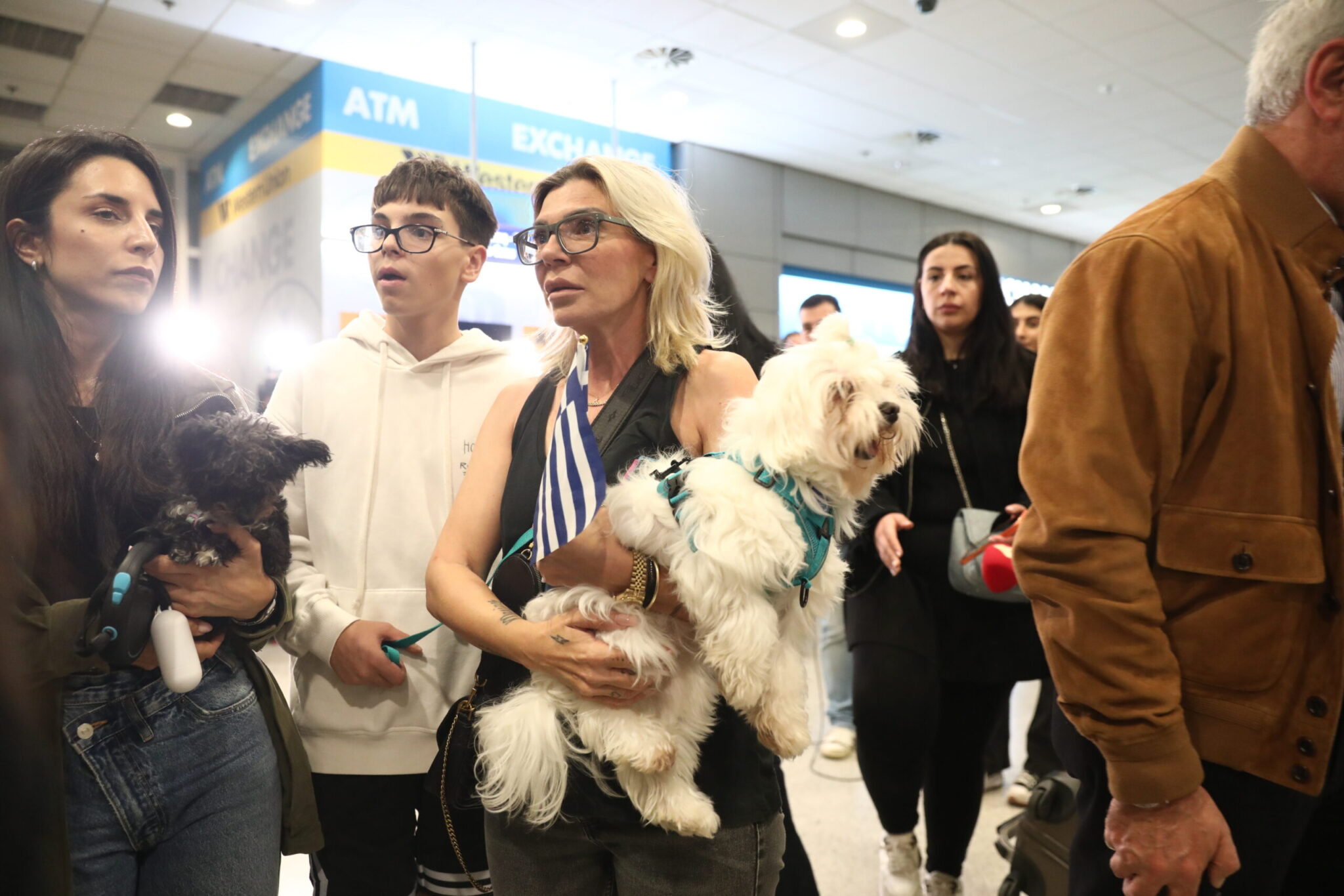 Η ατμόσφαιρα στον χώρο αφίξεων ήταν ιδιαίτερα φορτισμένη, με αρκετούς να μην μπορούν να συγκρατήσουν τα δάκρυά τους, καθώς μετά από μια δύσκολη περίοδο κατάφεραν να επιστρέψουν στην πατρίδα έχοντας δίπλα τους τα αγαπημένα τους ζώα.