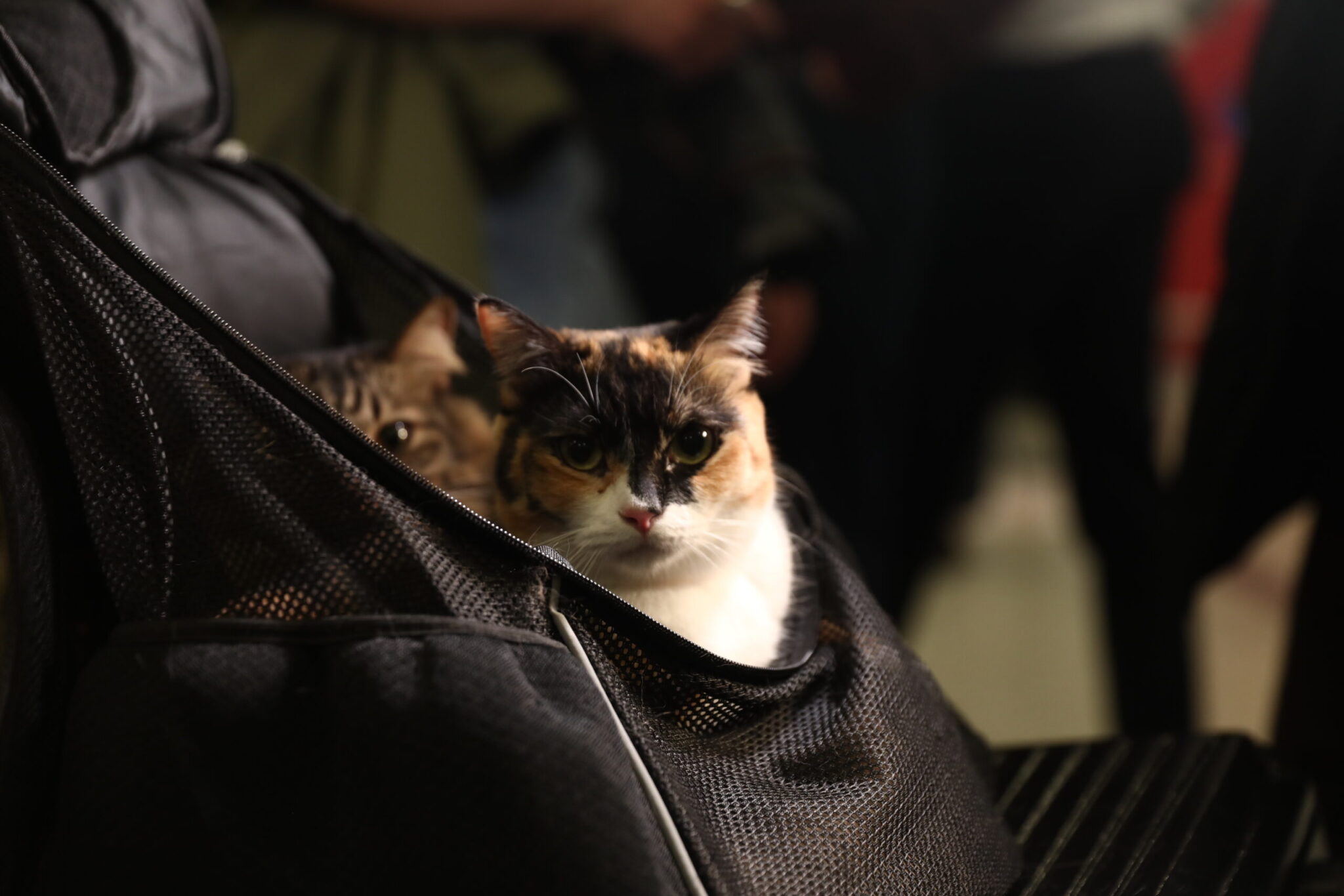 Τα περισσότερα ζώα μεταφέρθηκαν καθ’ όλη τη διάρκεια του ταξιδιού μέσα σε ειδικά σακίδια και κλουβιά μεταφοράς. Μόλις έφτασαν στο αεροδρόμιο, σκύλοι και γάτες – που για πολλούς αποτελούν μέλη της οικογένειας – βγήκαν από τα κουτιά τους, με τους ιδιοκτήτες να τα αγκαλιάζουν εμφανώς συγκινημένοι.