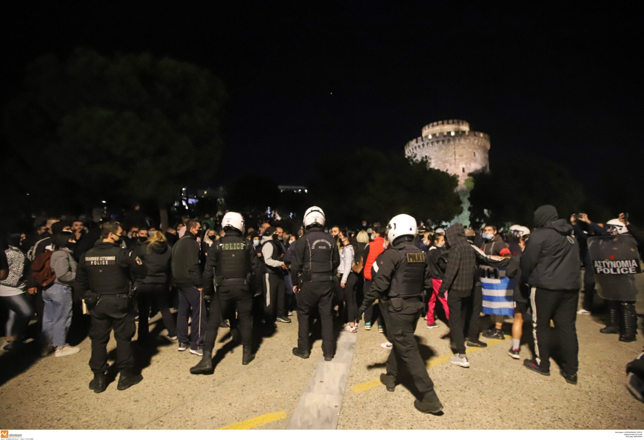 Ένταση και επεισόδια σημειώθηκαν στο χώρο του Λευκού Πύργου και δρόμους του κέντρου της Θεσσαλονίκης, μεταξύ αστυνομικών και διαδηλωτών κατά των μέτρων lockdown για τον κορονοιό.