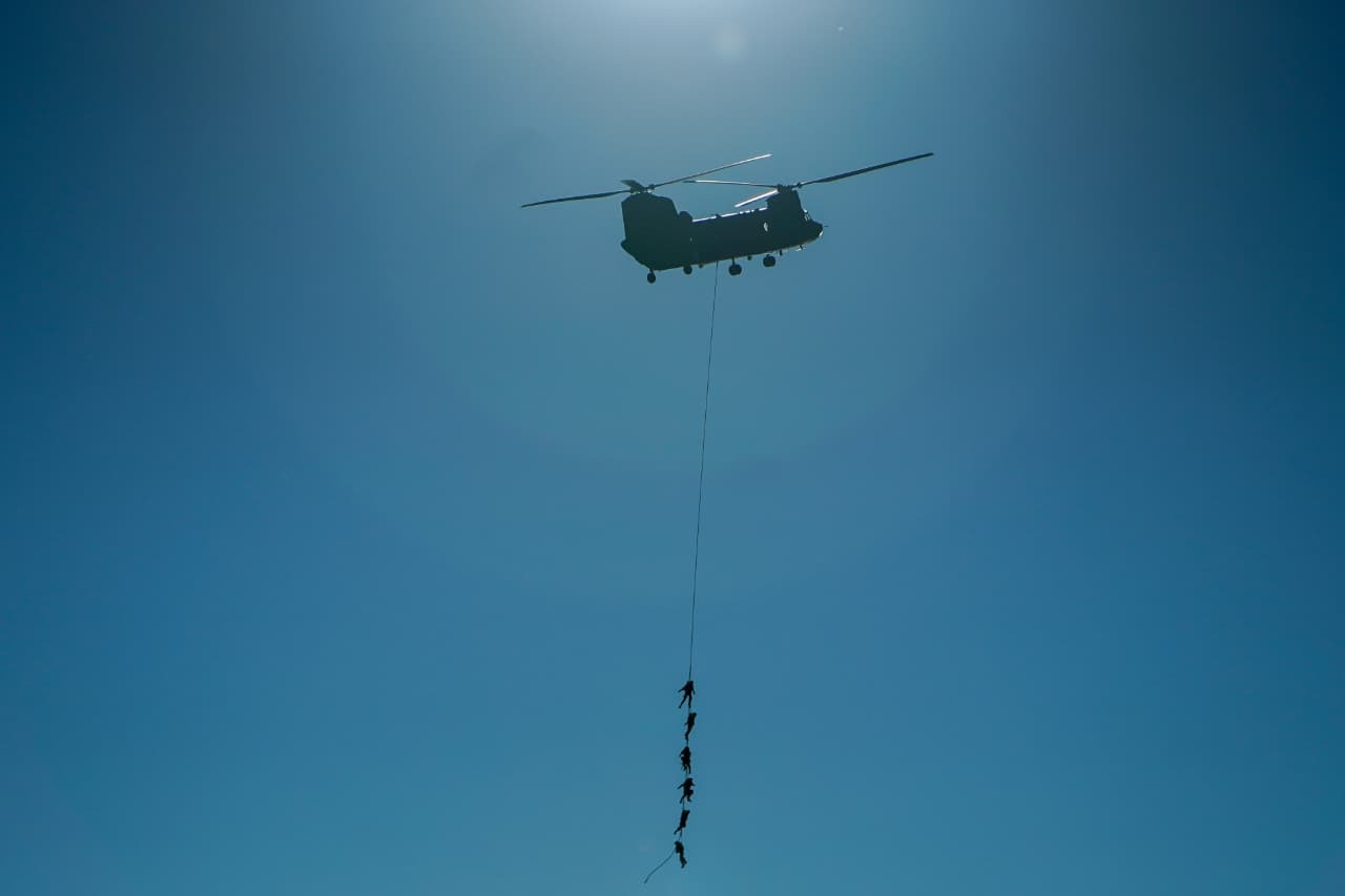● Εκκένωση προσωπικού με χρήση SPIES (Special Patrol Insertion/Extraction System) και απομάκρυνση λέμβου με είσοδο εντός ελικοπτέρου CH-47.
