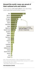 Μια μεγάλη διεθνής έρευνα του Pew Research Center, που βασίστηκε στις απαντήσεις πάνω από 30.000 πολιτών από 25 χώρες, προσπάθησε να απαντήσει στο ερώτημα: «Τι σας κάνει να αισθάνεστε περήφανοι για τη χώρα σας;».