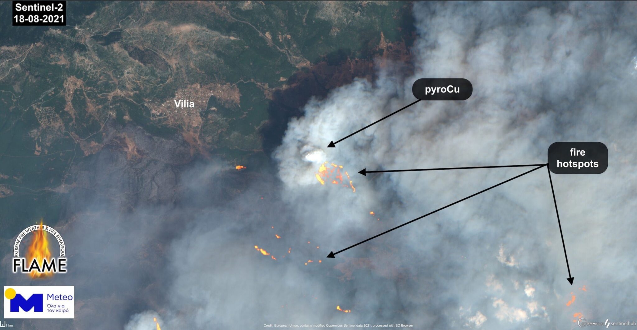 «Ακραία συμπεριφορά πυρός εμφάνισε την Τετάρτη 18 Αυγούστου 2021 η δασική πυρκαγιά που εκδηλώθηκε τη Δευτέρα 16 Αυγούστου 2021 στην περιοχή των Βιλίων, στη δυτική Αττική. Αιτία για αυτό αποτέλεσε η μεταβολή των ατμοσφαιρικών συνθηκών, η οποία σε συνδυασμό με την πλούσια και ξηρή καύσιμη ύλη οδήγησαν τελικά στη μεταβολή των διεργασιών που καθοδηγούν την εξάπλωση των πύρινων μετώπων», αναφέρει το meteo.gr του Εθνικού Αστεροσκοπείου Αθηνών.