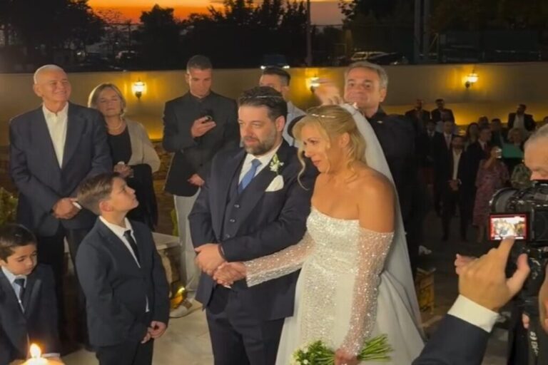 Κουμπάρος στη γαμήλια τελετή ήταν ο Πρωθυπουργός, Κυριάκος Μητσοτάκης.