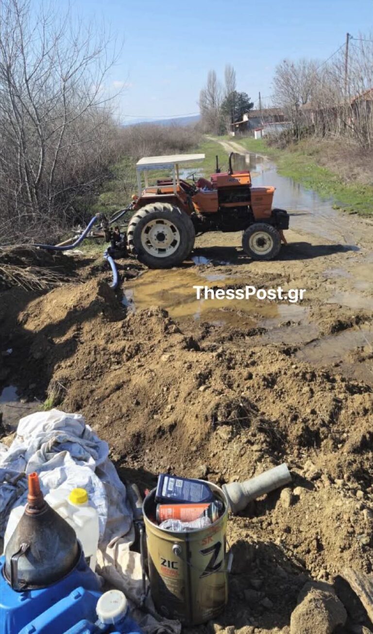 Όπως εξηγεί ο κ. Τσακίρης, «έχουν έρθει και νερά από τα ρέματα μέσα από το χωριό που κατεβαίνουν από το βουνό και αναγκαστικά έχουμε επιστρατεύσει οκτώ αγρότες που με τις πομόνες τους, αντλούμε τα νερά, εσωτερικά του χωριού προς τα έξω.