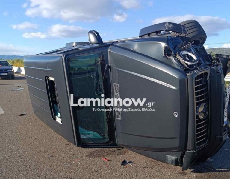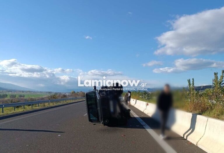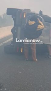 Μέσα σε αυτές τις επικίνδυνες συνθήκες, ένα τζιπ έπεσε πάνω σε προπορευόμενο Ι.Χ. και ανατράπηκε. Τρεις επιβάτες μεταφέρθηκαν προληπτικά στο νοσοκομείο Λαμίας, χωρίς σοβαρούς τραυματισμούς.