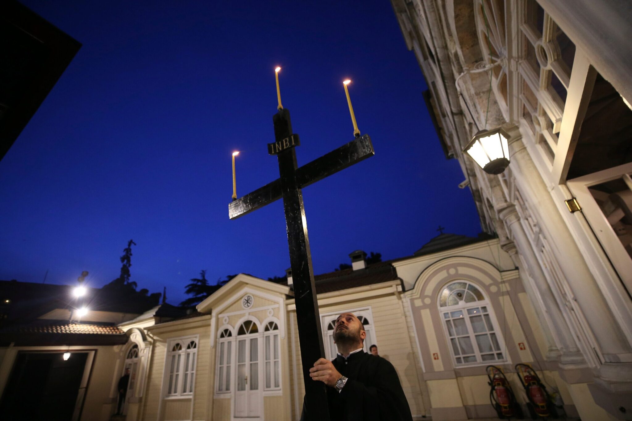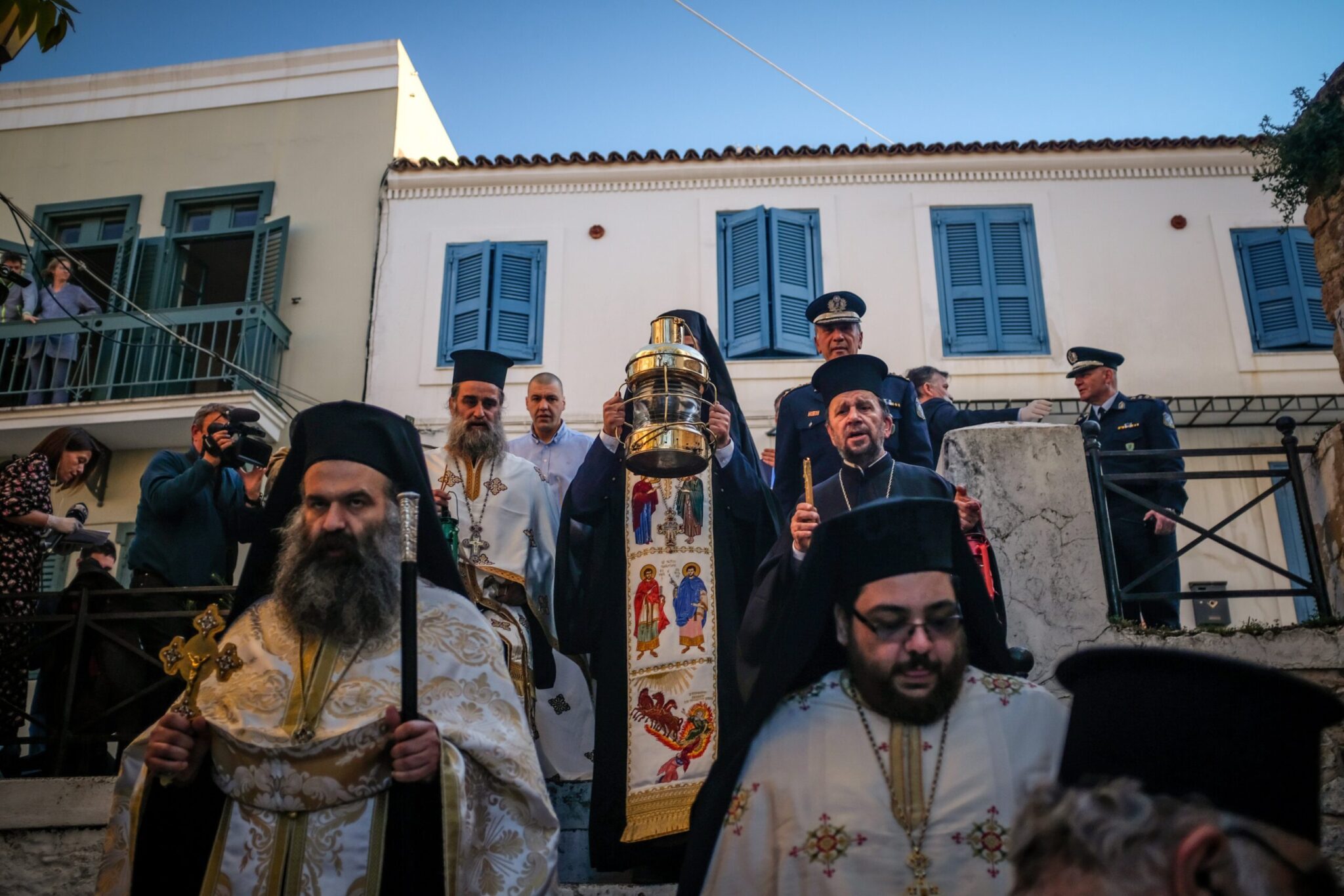 Ο Έξαρχος του Αγίου Τάφου εν Ελλάδι, αρχιμανδρίτης Δαμιανός επικεφαλής πομπής,μεταφέρει το Άγιον Φως από τα Ιεροσόλυμα,στην Εξαρχία του Πανάγιου Τάφου στην Πλάκα.Φέτος το Άγιο Φως δεν θα διανεμηθεί σε καμία ενορία,λόγω μέτρων για την διασπορά του κορονοϊού, Μ.Σάββατο 18 Απριλίου 2020 (EUROKINISSI/ΑΓΓΕΛΟΣ ΜΠΑΡΑΪ) EUROKINISSI/ΑΓΓΕΛΟΣ ΜΠΑΡΑΪ