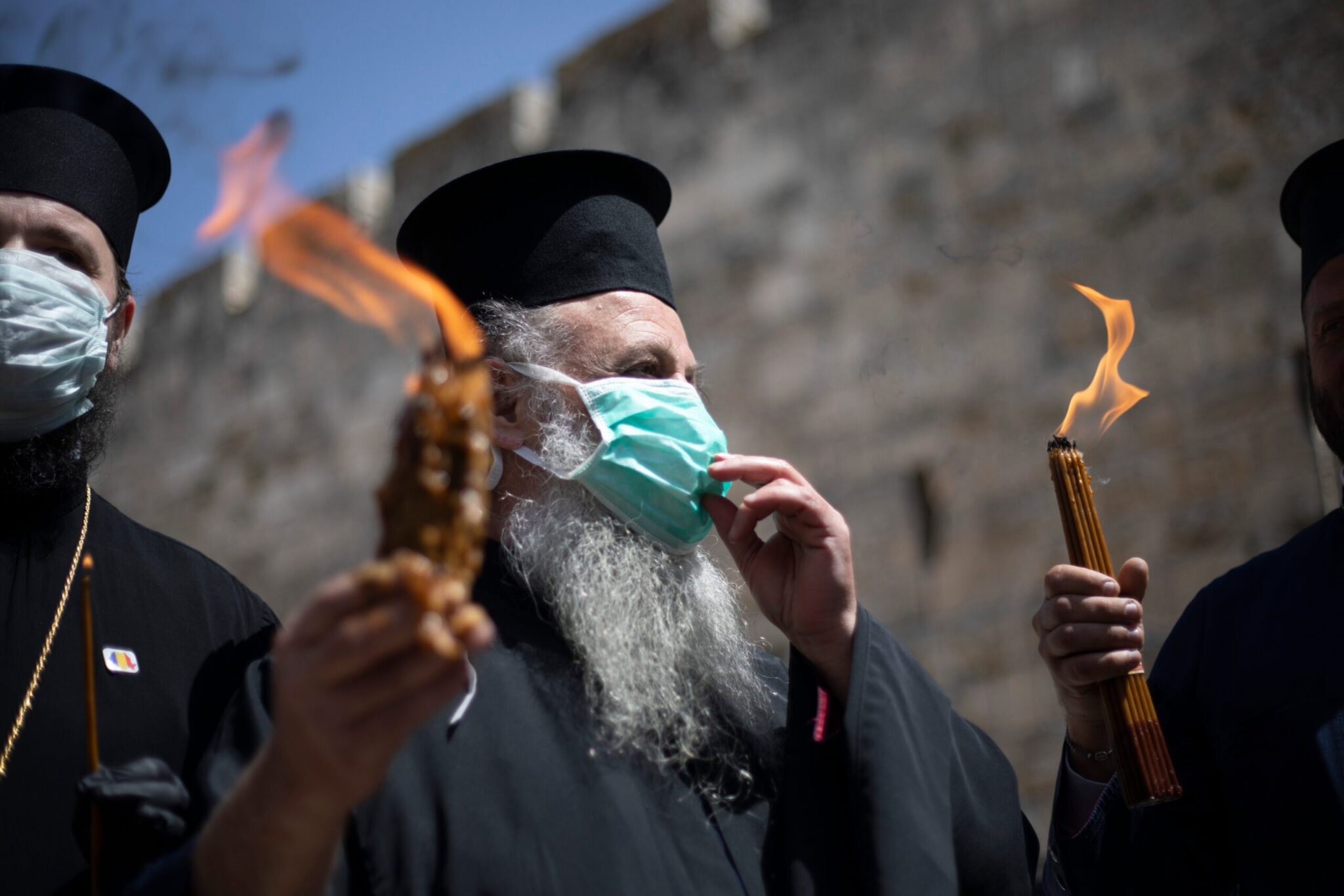 Υπό πρωτόγνωρες συνθήκες για τη σύγχρονη εποχή τελέστηκε και το μυστήριο της αφής του Αγίου Φωτός, σε έναν άδειο από πιστούς Ναό της Αναστάσεως ενώ έξω από τον ναό περίμεναν λιγοστοί ιερείς που φορούσαν μάσκες για να παραλάβουν το και να το μοιράσουν σε λιγοστούς πιστούς που κινούνταν στους δρόμους.