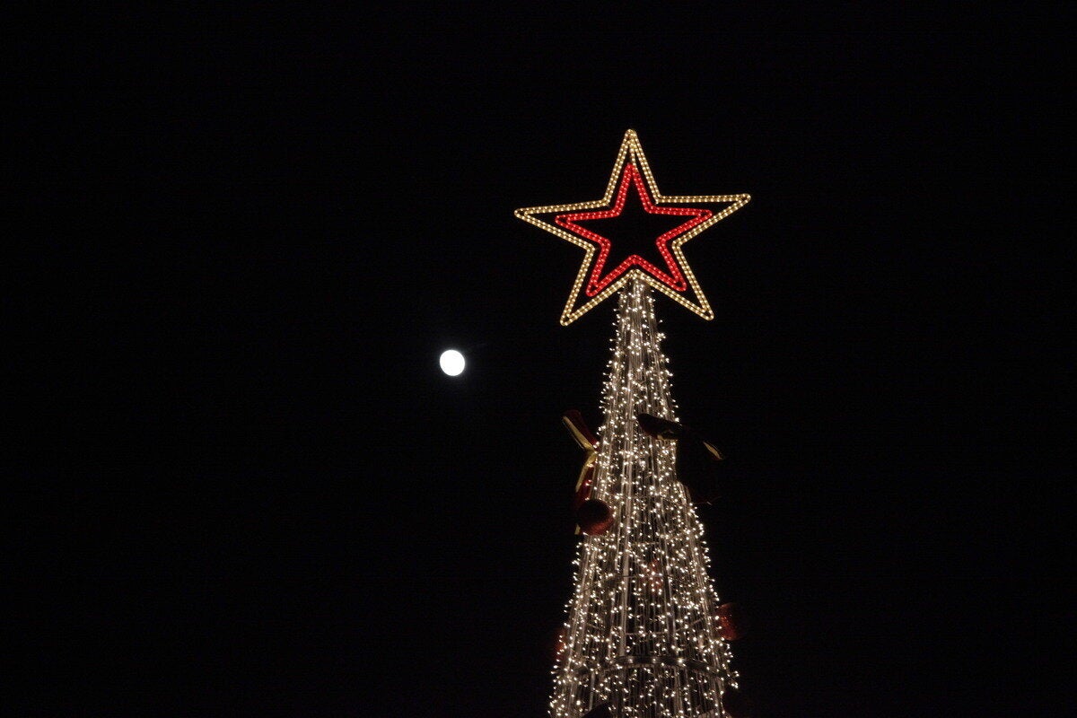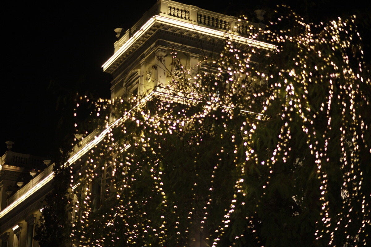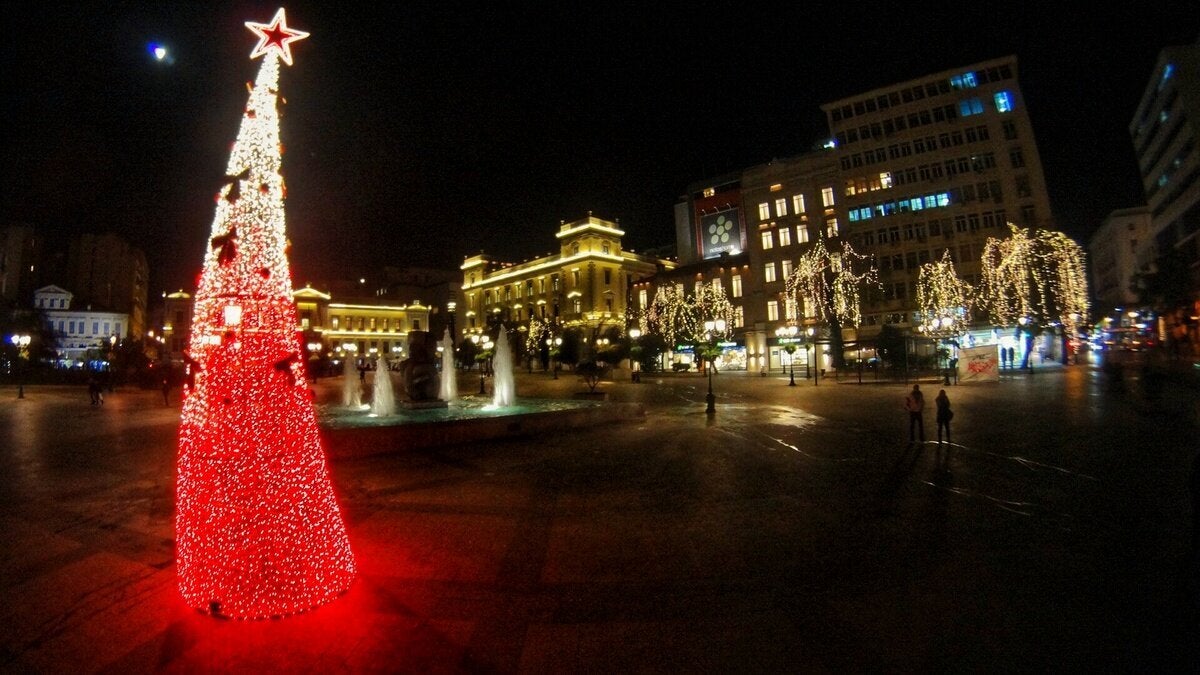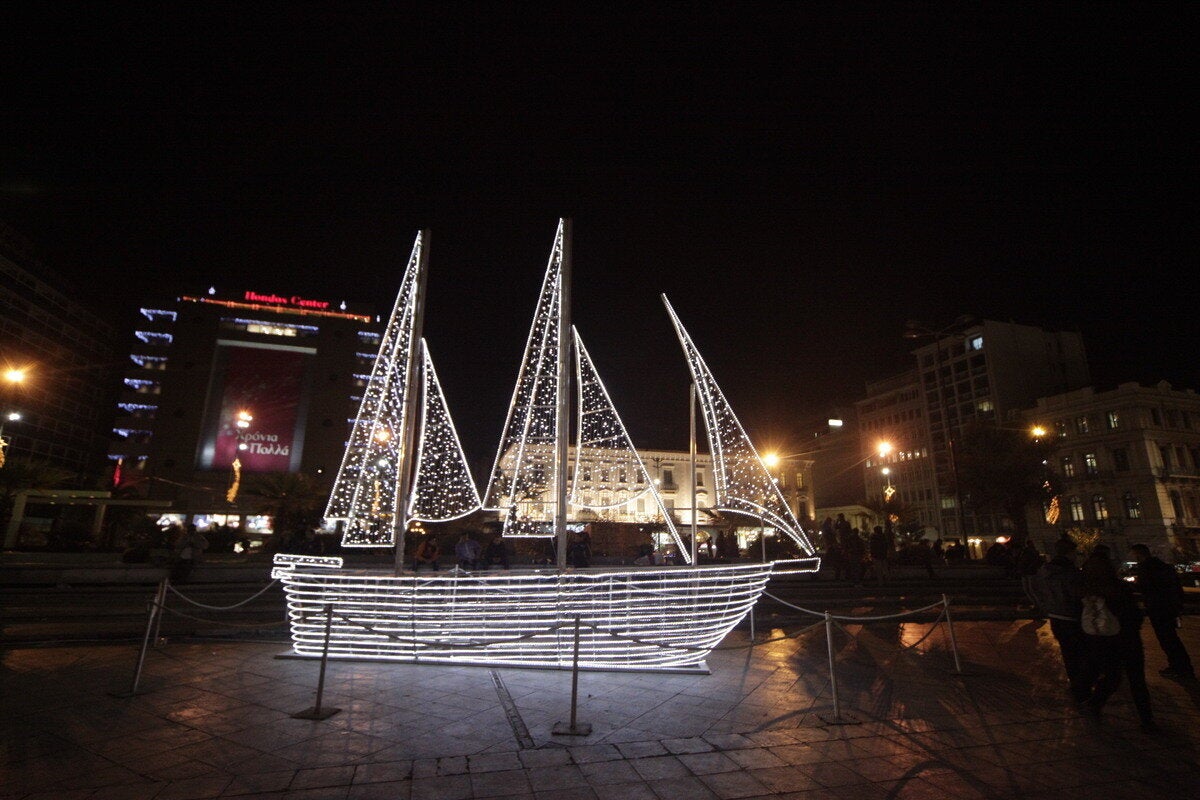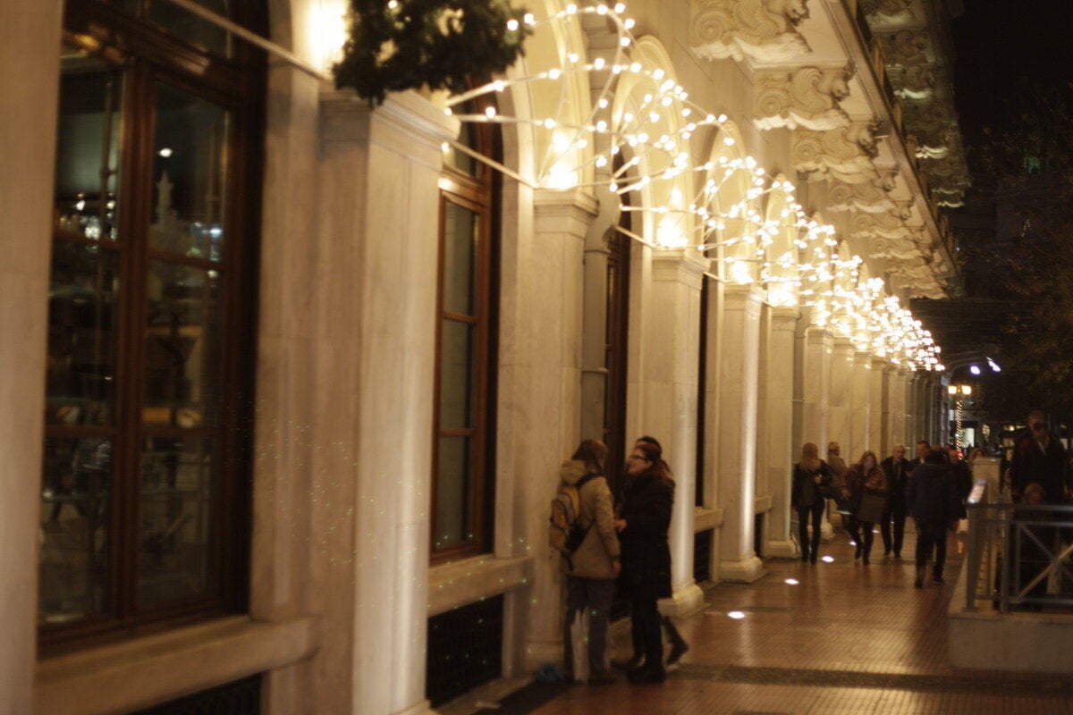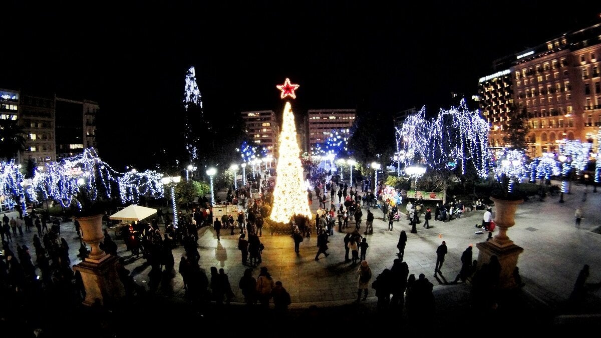 Στο κλίμα των Χριστουγέννων είναι η Αθήνα, με τους δρόμους να είναι στολισμένοι με πολύχρωμα φώτα.