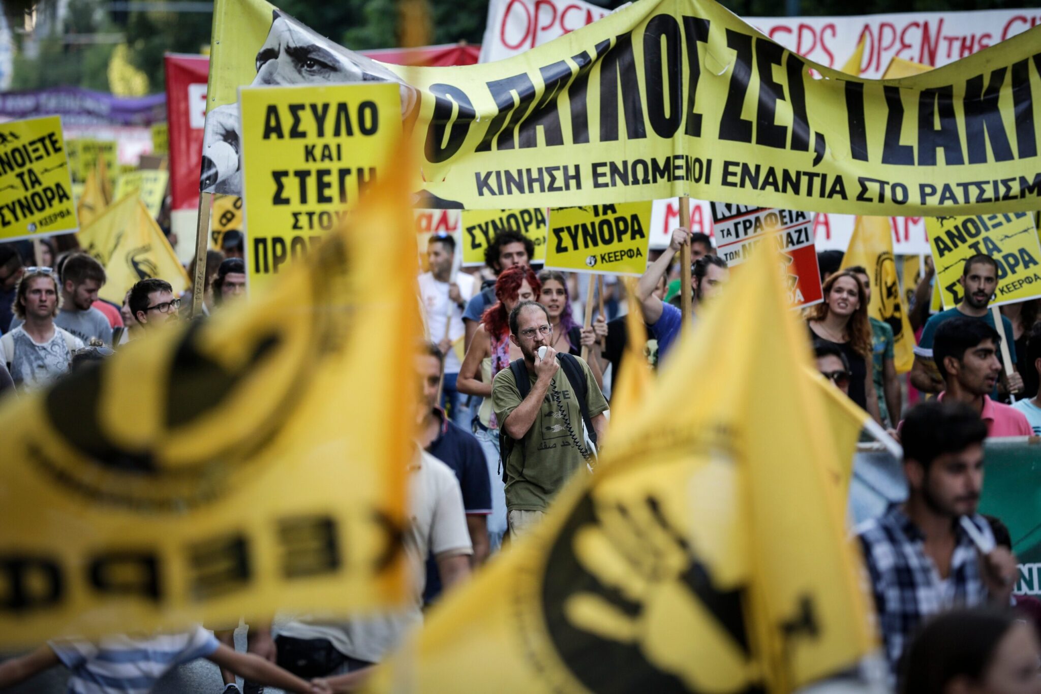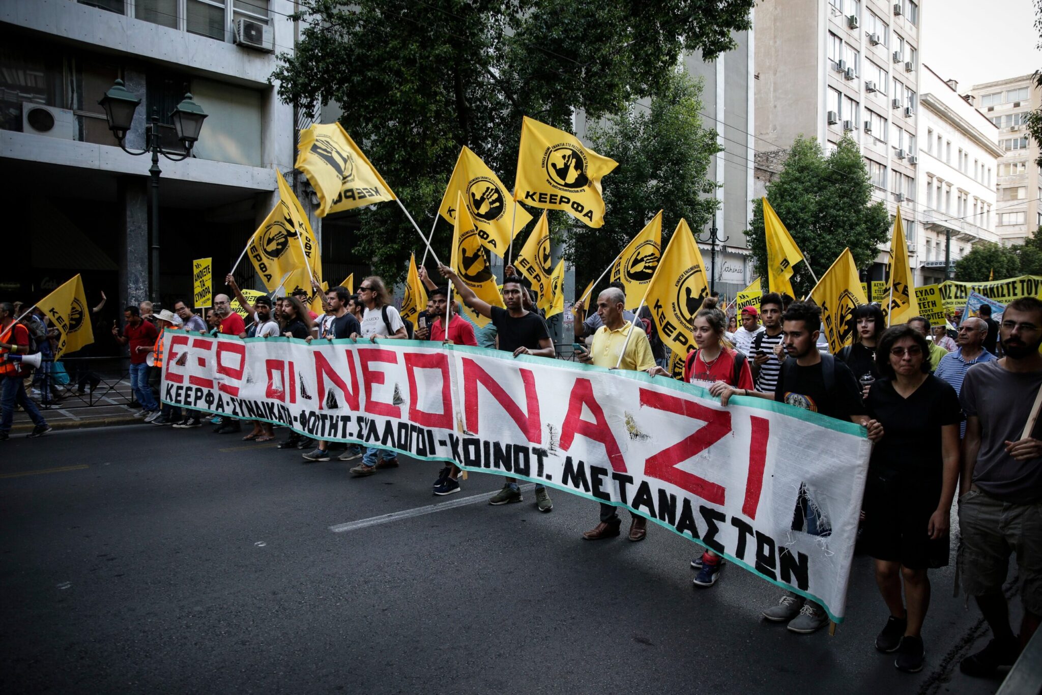 Αντιφασιστικό συλλαλητήριο πραγματοποιήθηκε στην Ομόνοια το απόγευμα του Σαββάτου από αντιρατσιστικές συλλογικότητες, οργανώσεις της Αριστεράς, σωματεία και προσφυγικές – μεταναστευτικές κοινότητες.