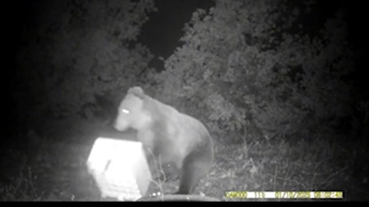Στο βίντεο φαίνεται η αρκούδα να πλησιάζει και να ανοίγει τις κυψέλες, ενώ στη συνέχεια καταναλώνει το εσωτερικό τους.