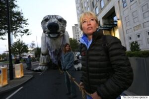 Όσο το Λονδίνο κοιμόταν χθες το βράδυ, η κόρη μου κι εγώ βοηθήσαμε να μετακινήσουμε μια τεράστια πολική αρκούδα στους άδειους δρόμους της. Υπήρχαν στιγμές που δεν είμαστε σίγουρες αν είχαμε ξυπνήσει εντελώς. Υπάρχει κάτι το ονειρώδες στα μεγάλα μαύρα μάτια αυτού του ευγενικού γίγαντα, μια σαγηνευτική ματιά σε ένα κόσμο μακρυά από δω. Επισκέφθηκα την Αρκτική πέρσι και από τότε έχει χαραχτεί βαθιά στο υποσυνείδητό μου. Είμαστε σήμερα εδώ για να σταματήσουμε τη Shell να τρυπάει στους μισολιωμένους πάγους της. Θέλουμε να σταματήσουμε αυτό τον εφιάλτη, προτού παγιωθεί αυτή η κατάσταση.